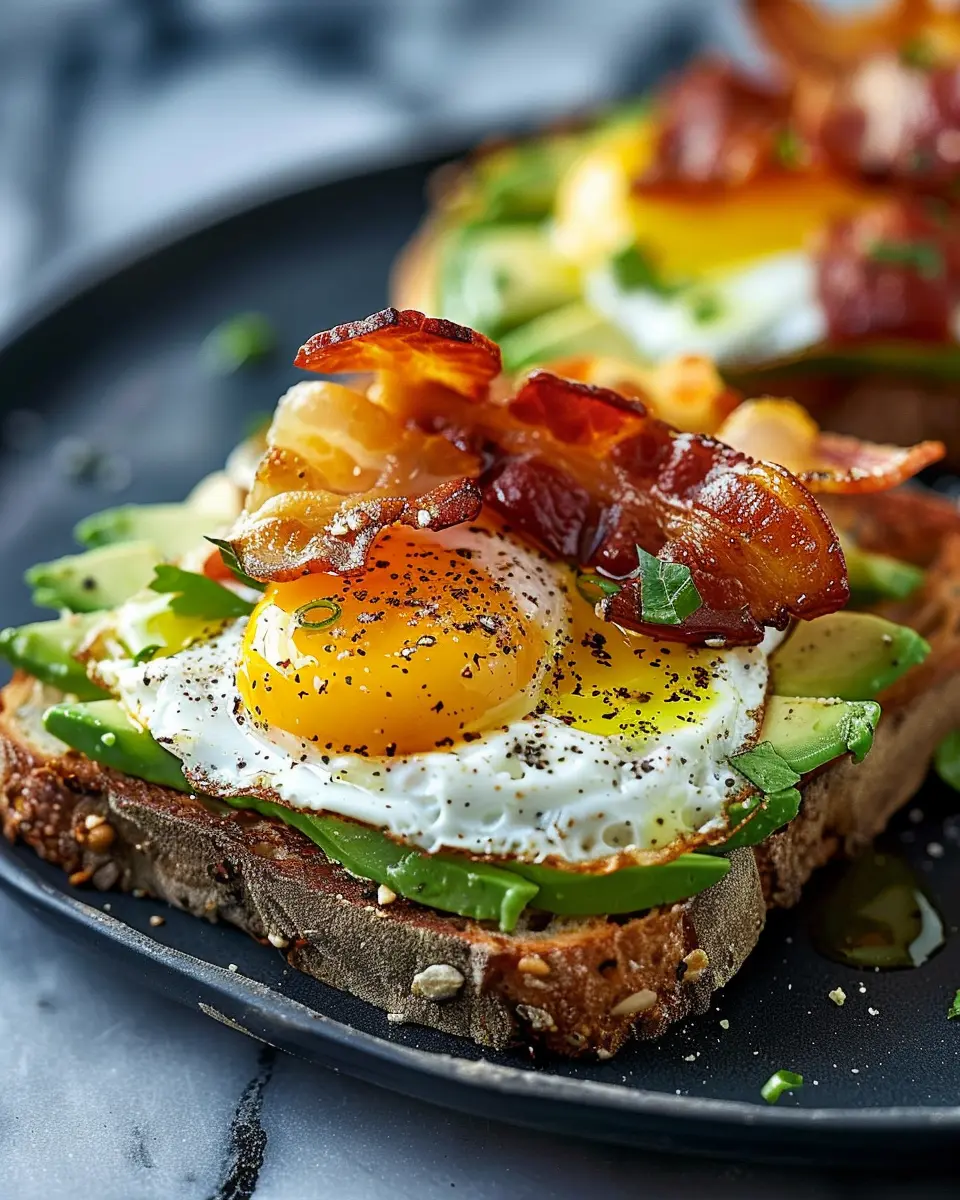 That’s all there is to it! These avocado bacon and egg toasts are not just a feast for the eyes, but they also cater to those busy mornings when you need something quick yet hearty. Plus, this recipe is incredibly versatile—feel free to add interchangeable toppings like sprouts or slices of tomato.