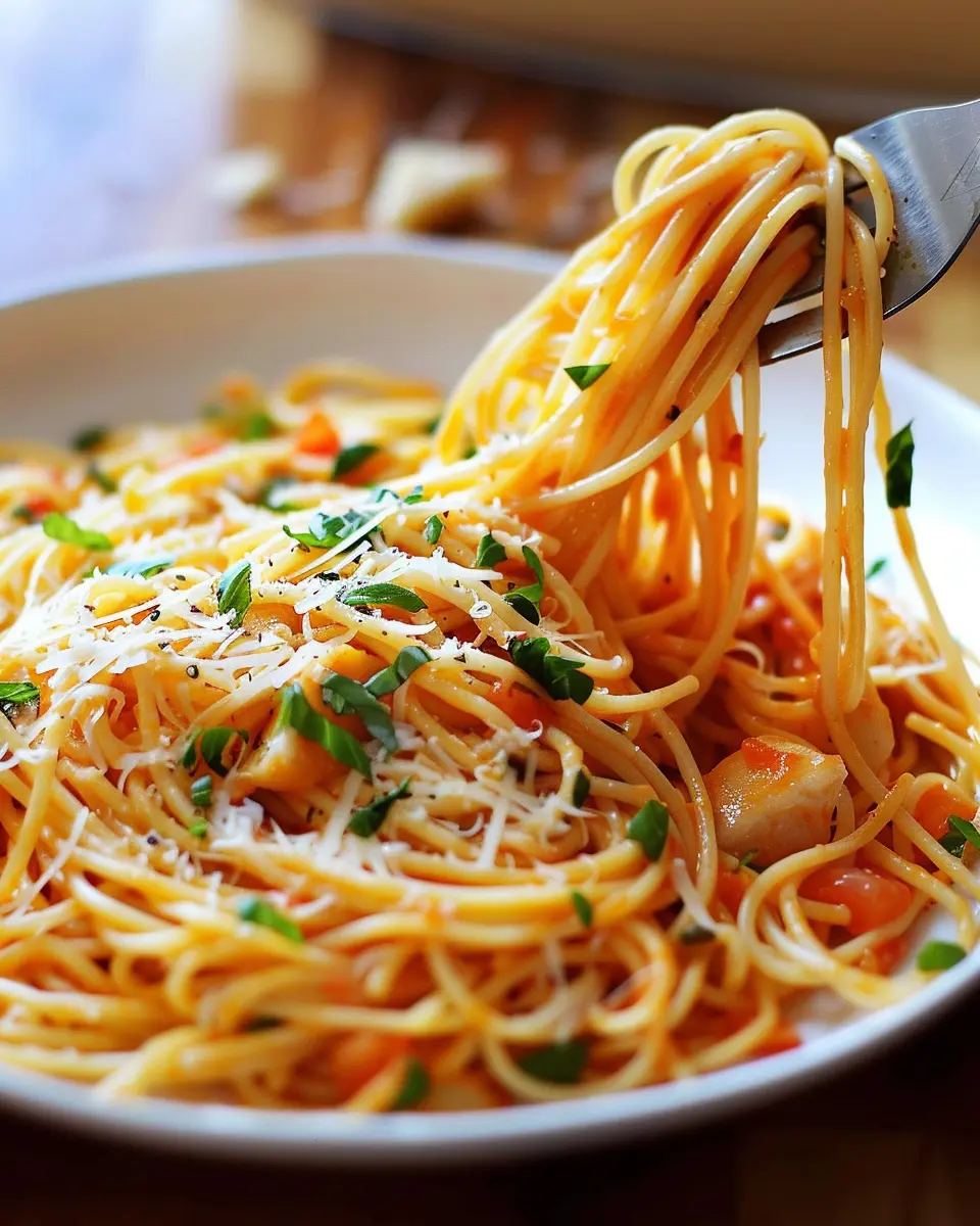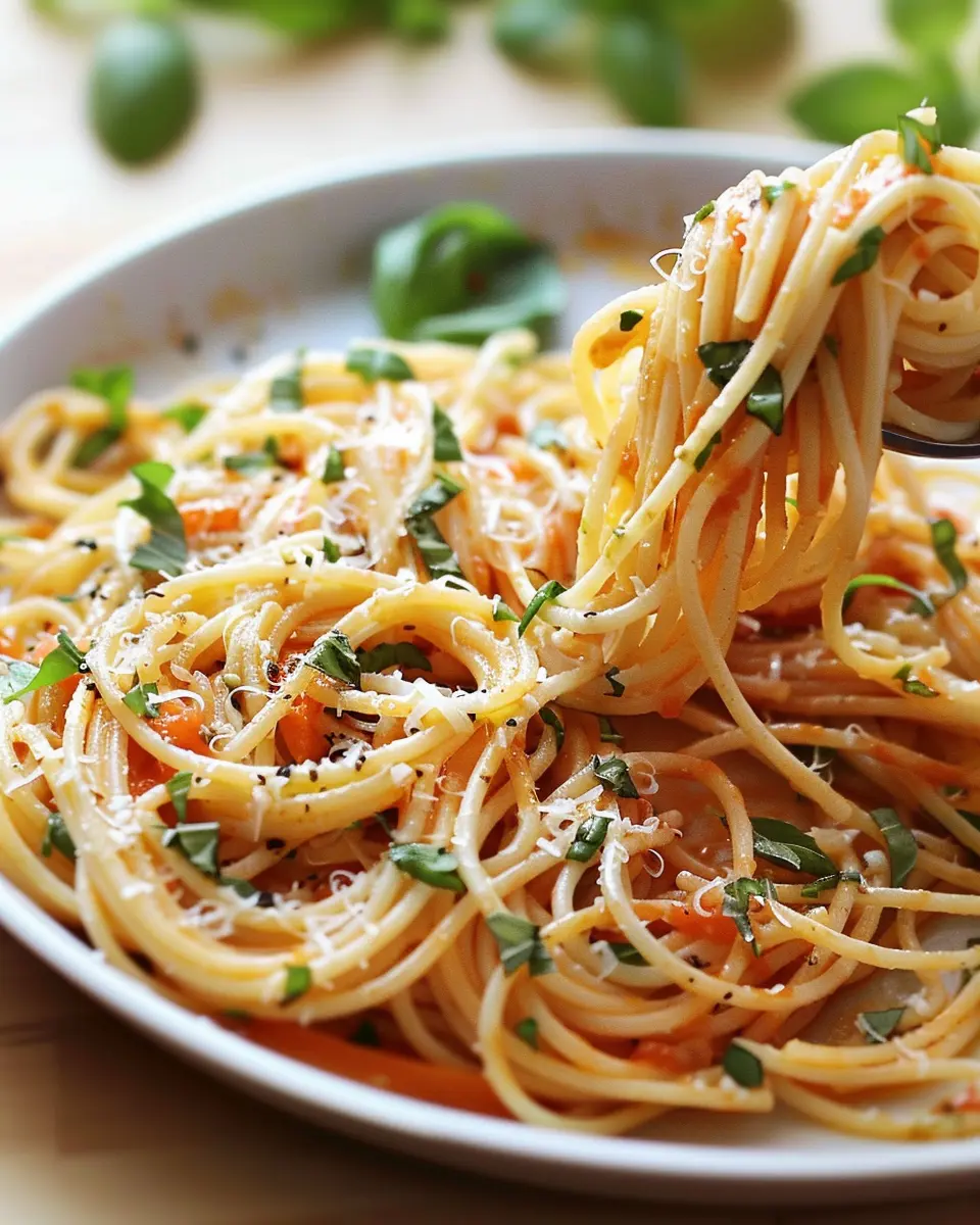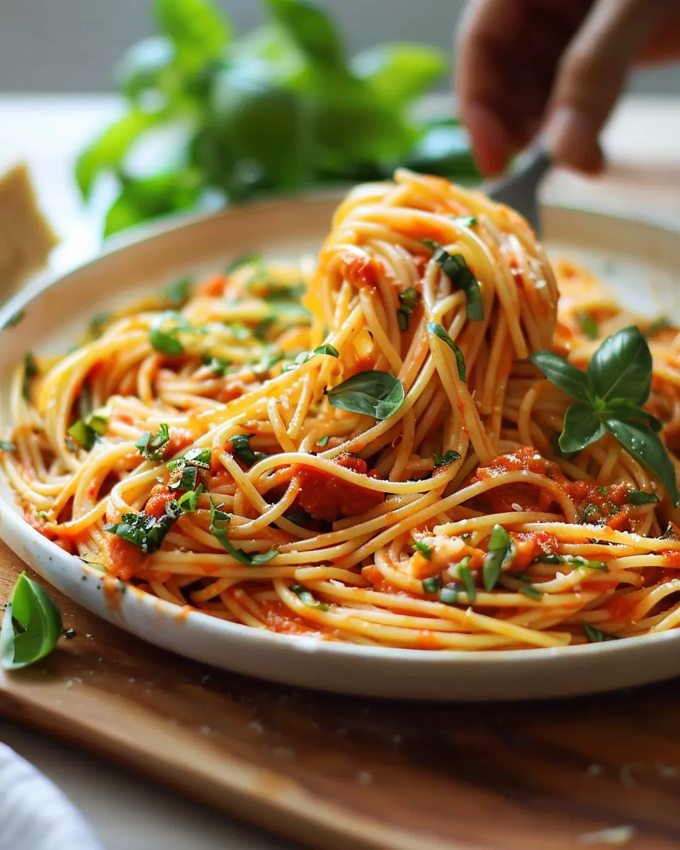 For a beautiful presentation, toss the spaghetti with the sauce just before serving. Garnish with additional fresh basil and a sprinkle of Parmesan for that restaurant-like touch.