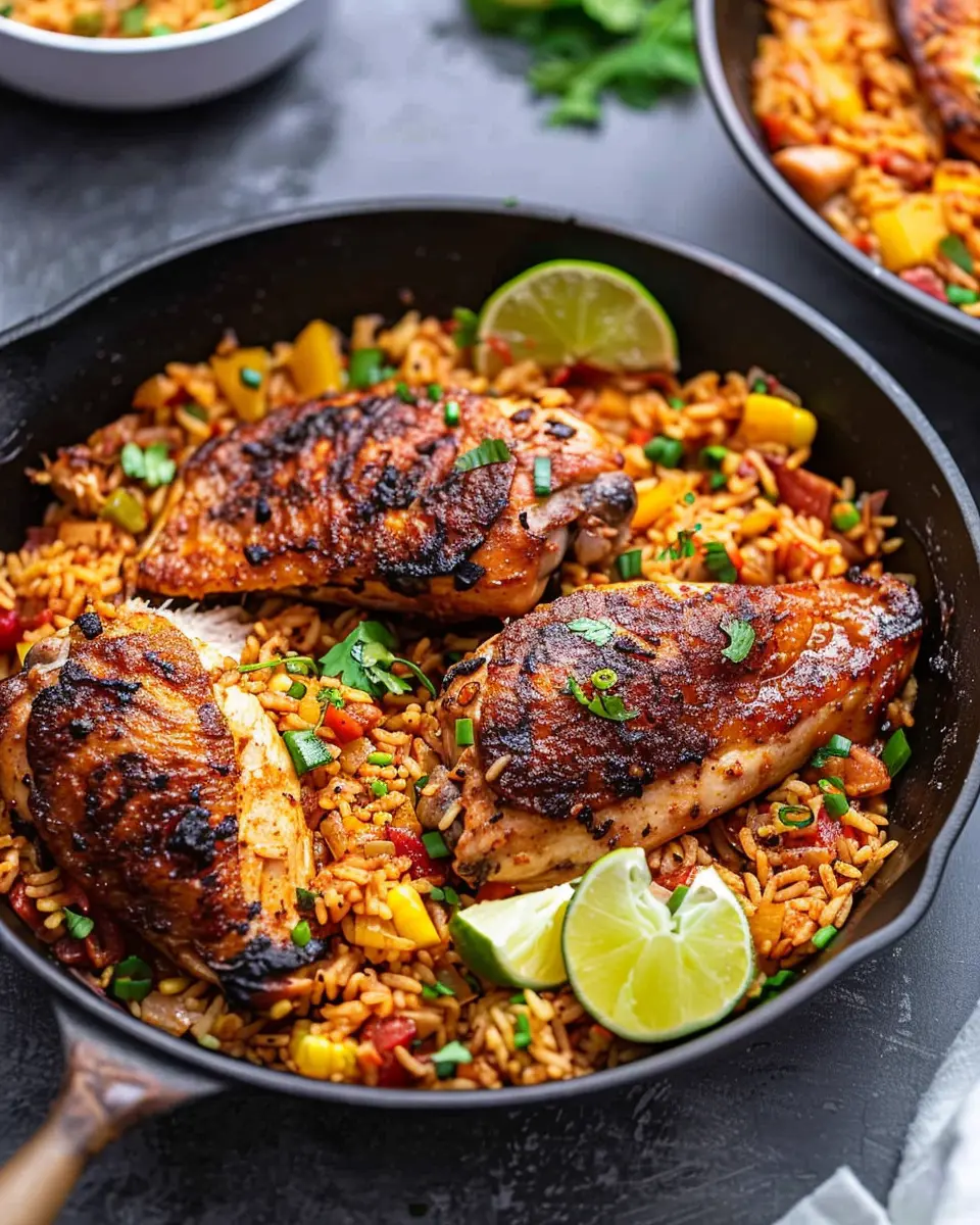 Once you’re prepped, the cooking phase is quick and fulfilling. The entire skillet dish should take around 25–30 minutes to cook. You’ll sauté the chicken, mix in the rice, and let those flavors mingle beautifully. It’s the perfect solution for a busy weeknight dinner.