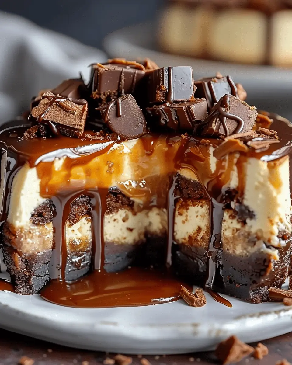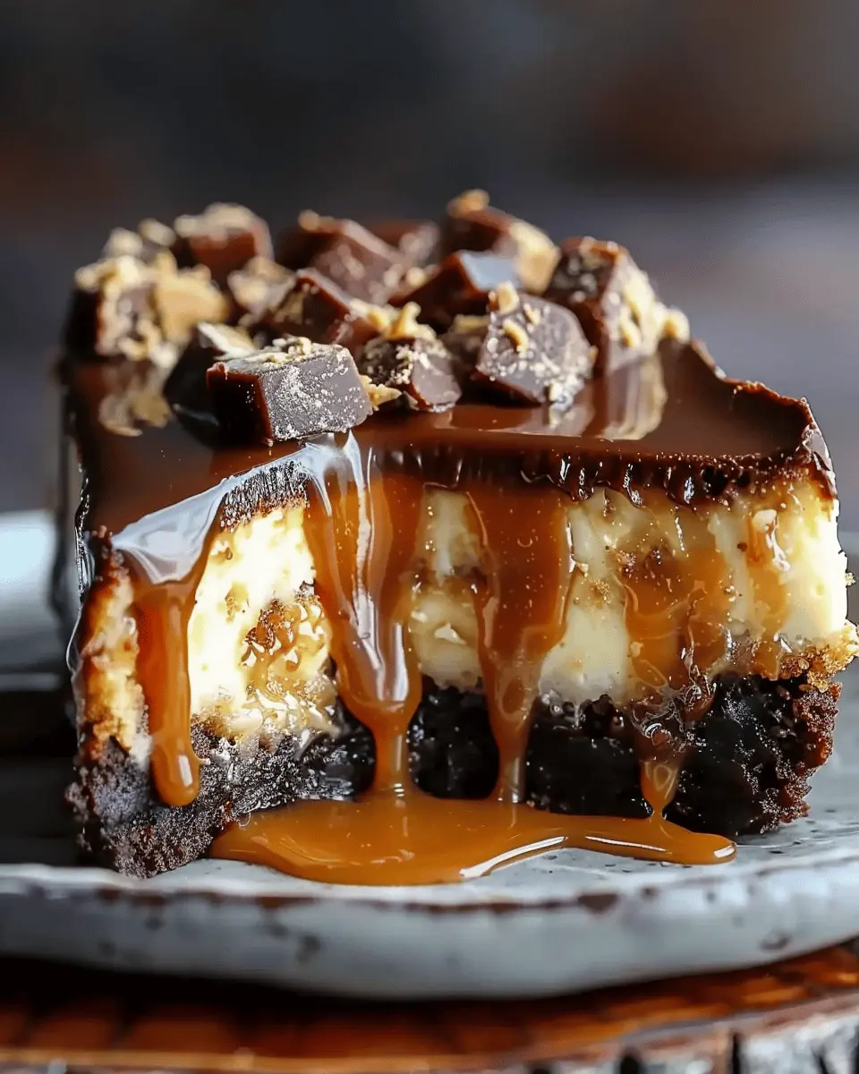 Next, let’s talk about flavors! Chocolate lovers will rejoice at the rich, deep cocoa notes of the brownie, which are perfectly complemented by the creamy vanilla undertones of the cheesecake. And let’s not forget that caramel—a drizzle of warm, gooey sweetness on top brings everything together, elevating it to a whole new level of indulgence.