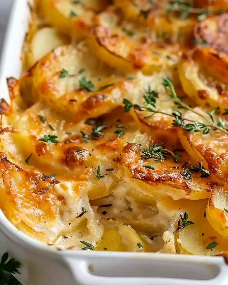 Easy Creamy Scalloped Potatoes Recipe with Turkey Bacon Delight