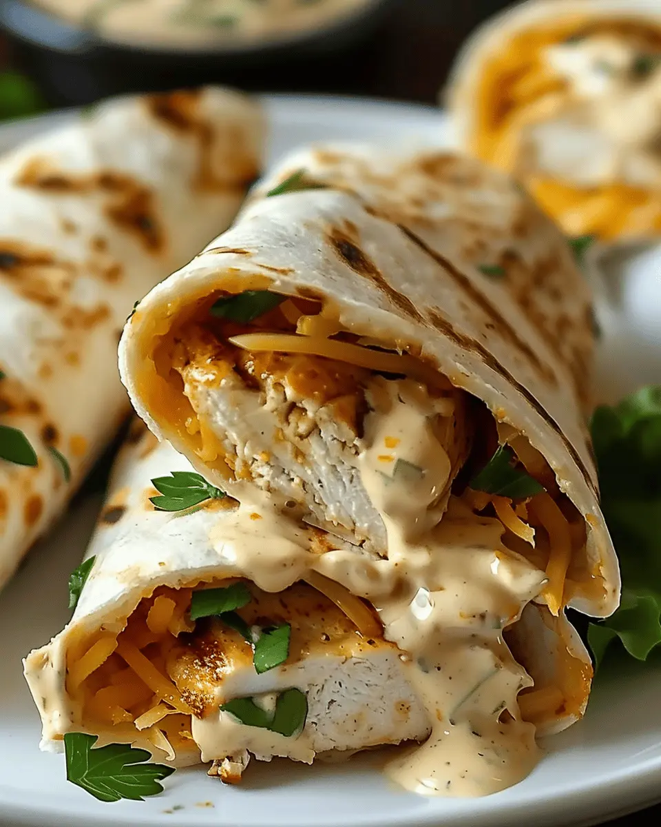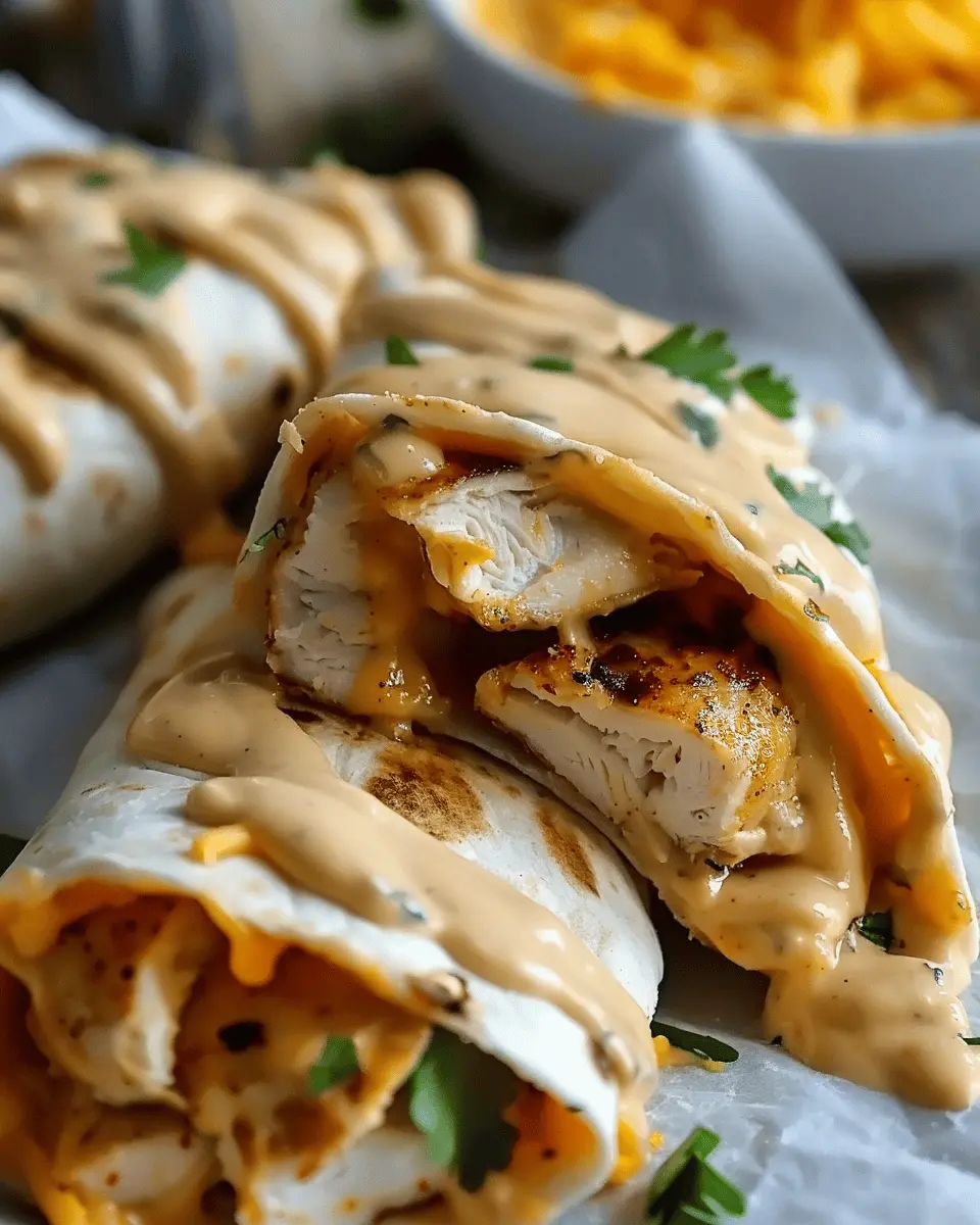 Enjoy these delicious Cheesy Garlic Chicken Wraps that combine tender chicken with a burst of garlic flavor wrapped in a soft tortilla.