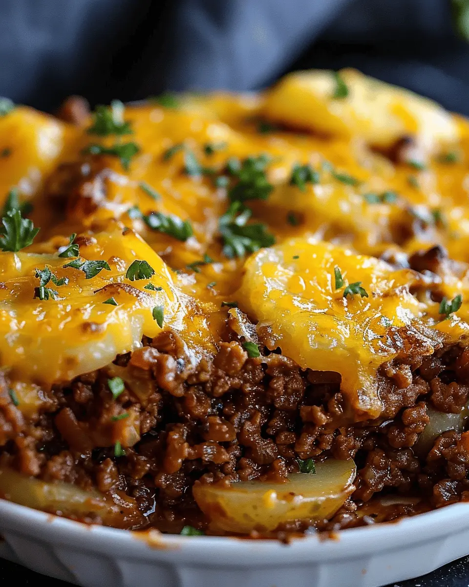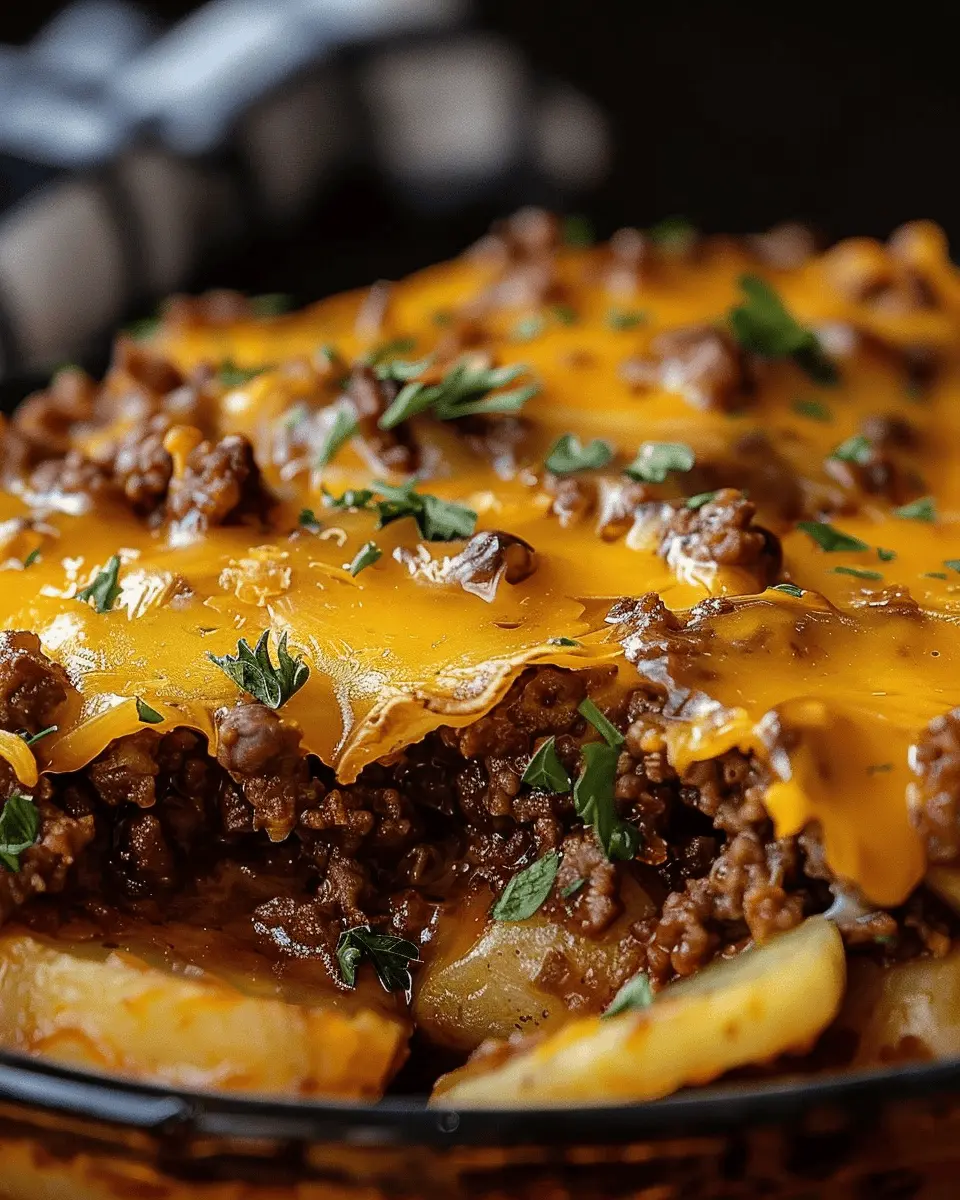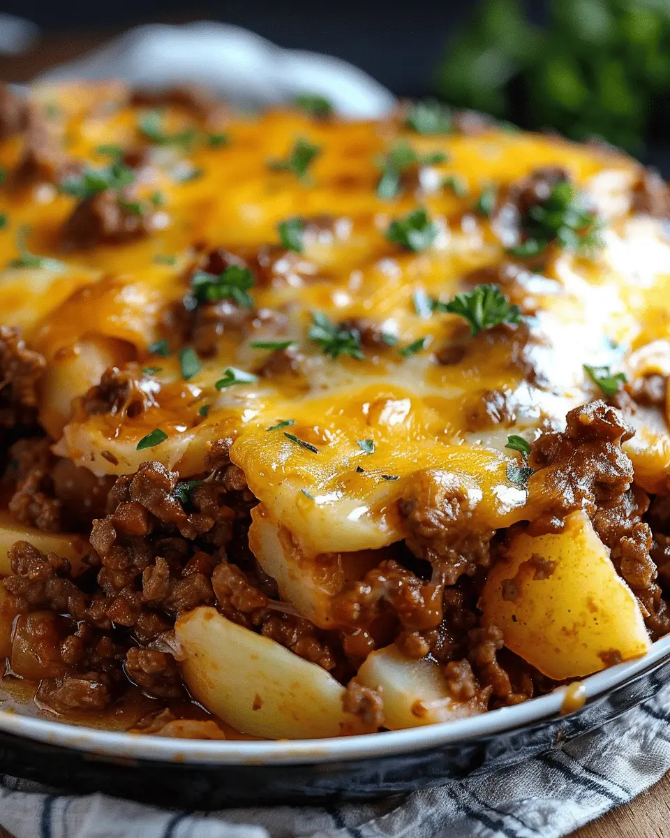 A delightful dish combining cheesy goodness with hearty ground beef and tender potatoes, making it the ultimate comfort food.