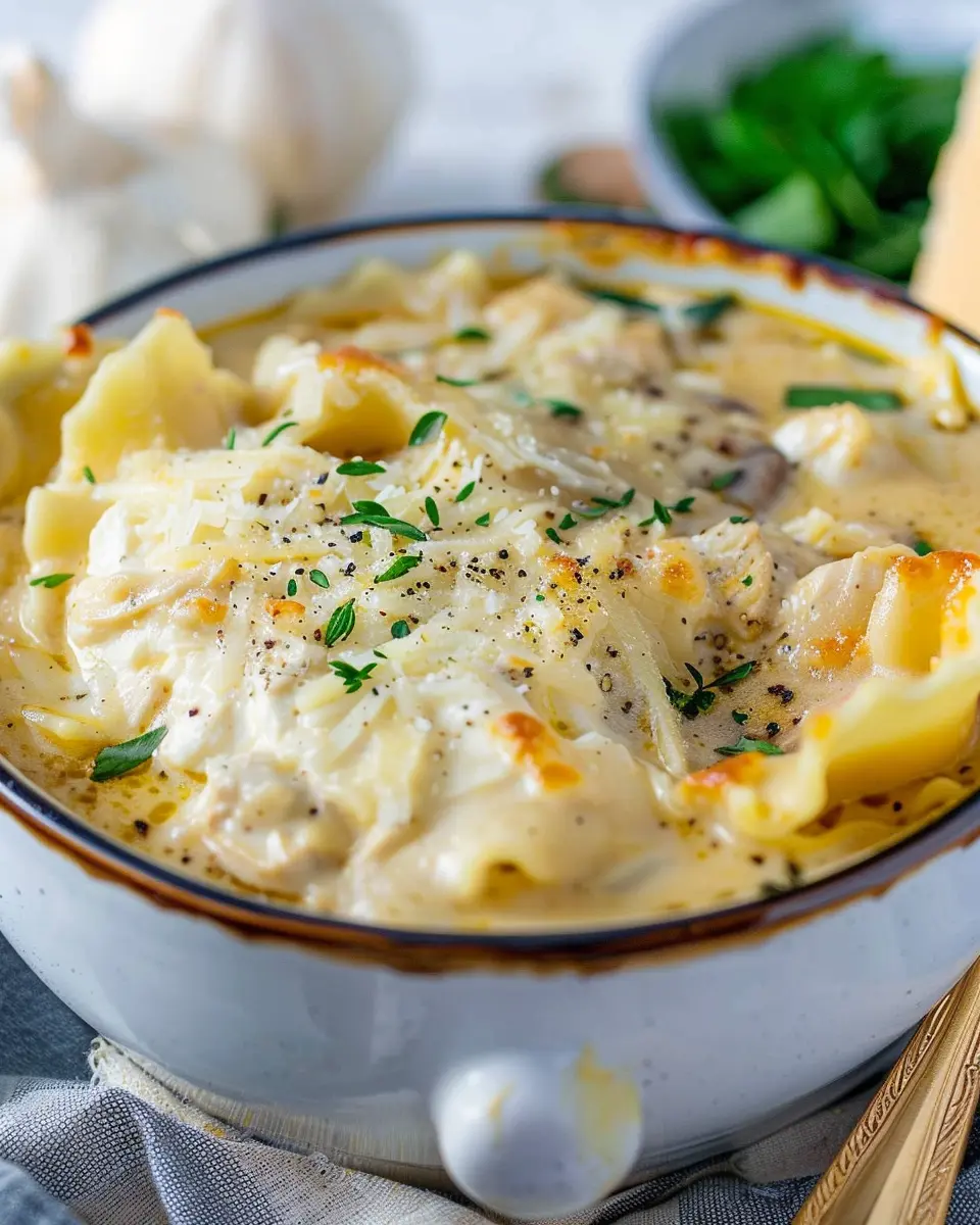 A creamy and comforting Chicken Alfredo Lasagna Soup that brings the flavors of chicken alfredo into a warm, hearty bowl.