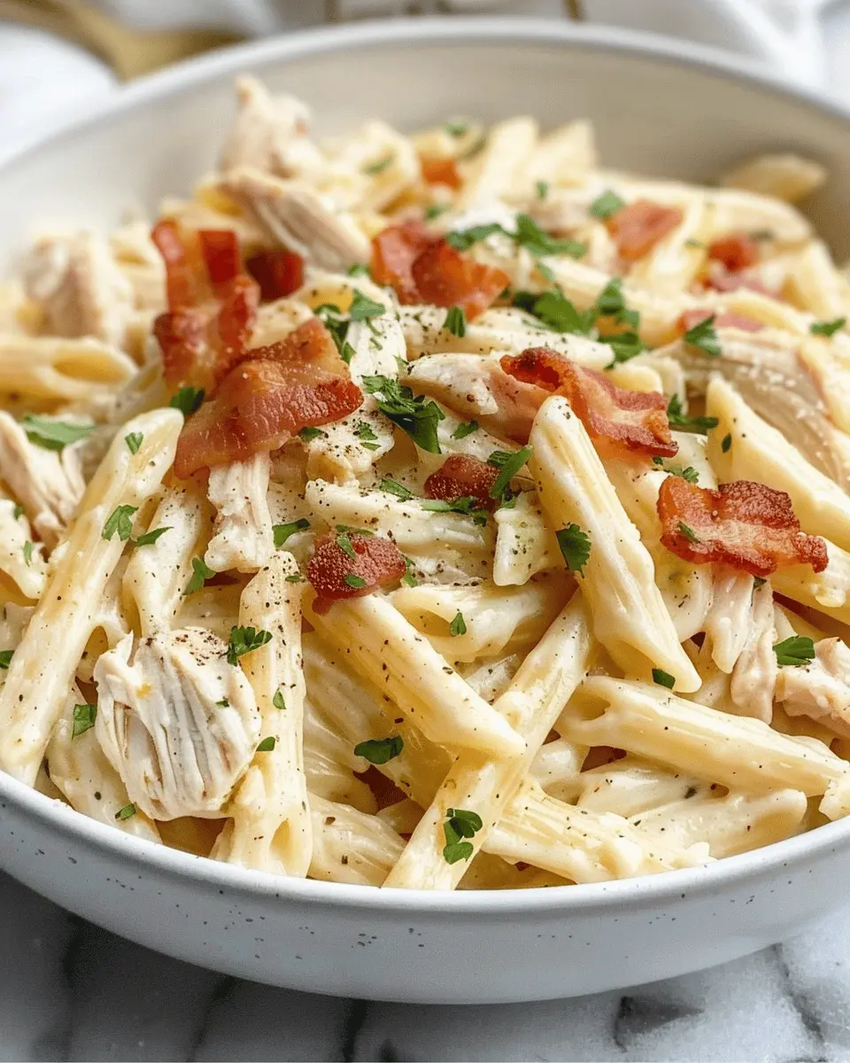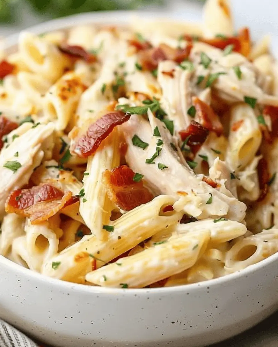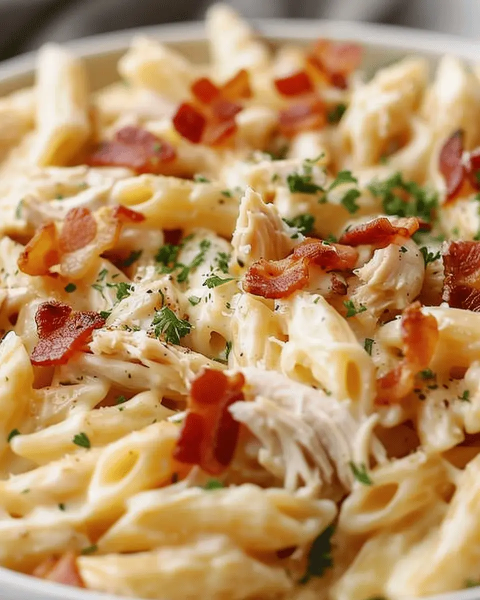Keywords: Chicken Bacon Ranch Pasta, quick meal, comfort food