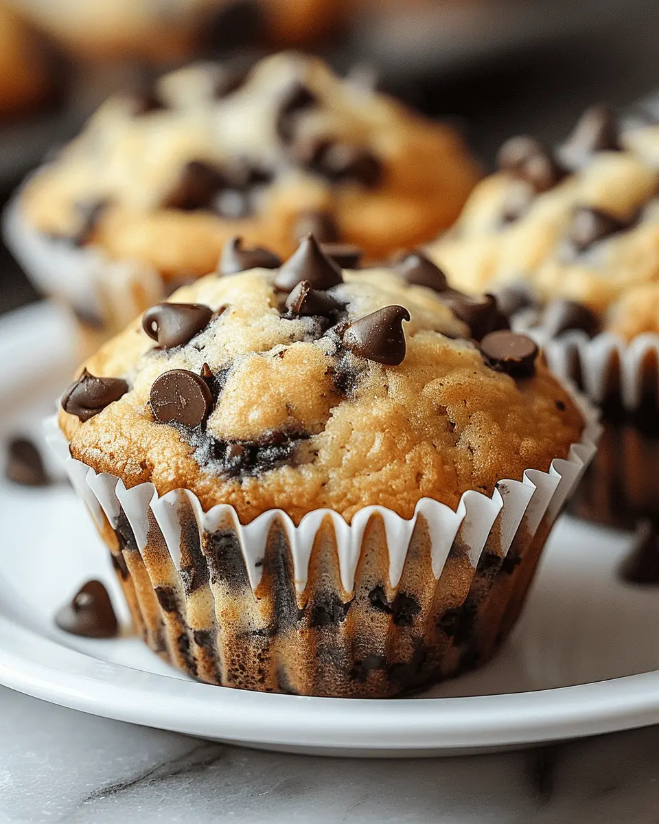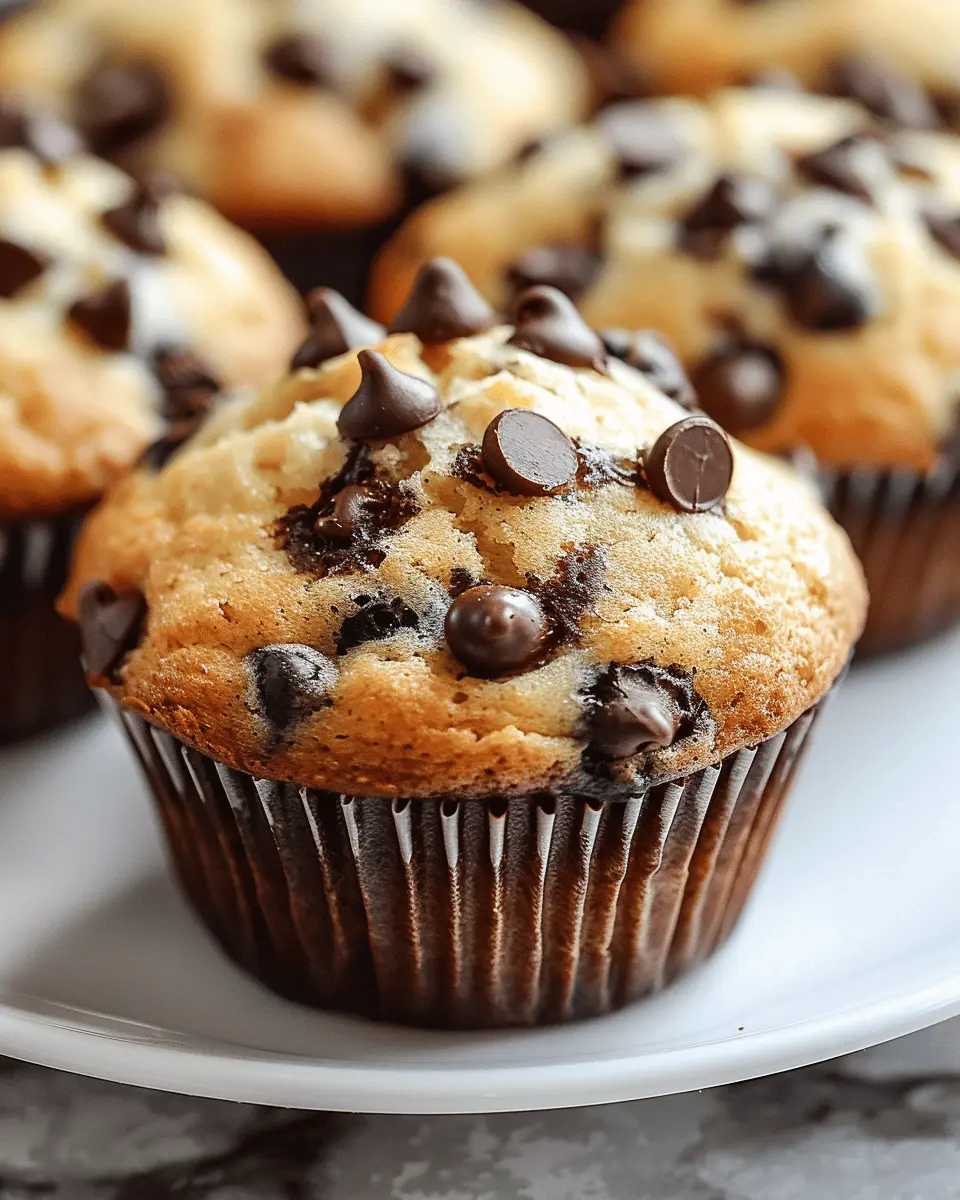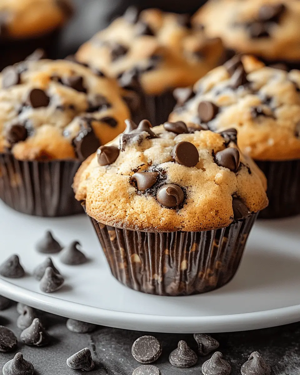 Enjoy the ultimate chocolate chip muffins with a soft and fluffy texture, perfect for breakfast or a sweet treat.