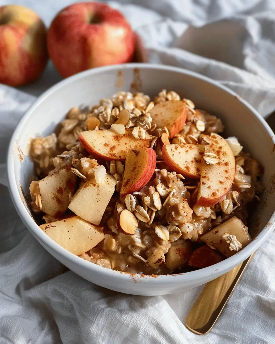 A delightful, warm breakfast bowl that combines the comforting flavors of cinnamon and apples with nutritious oats.