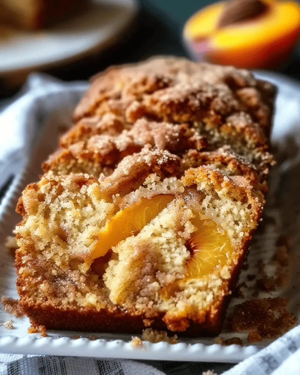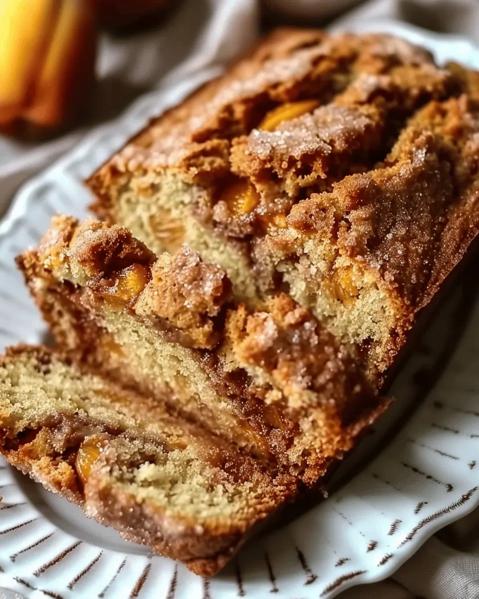 Delight in this Cinnamon Peach Bread, a deliciously moist and flavorful treat perfect for any occasion.