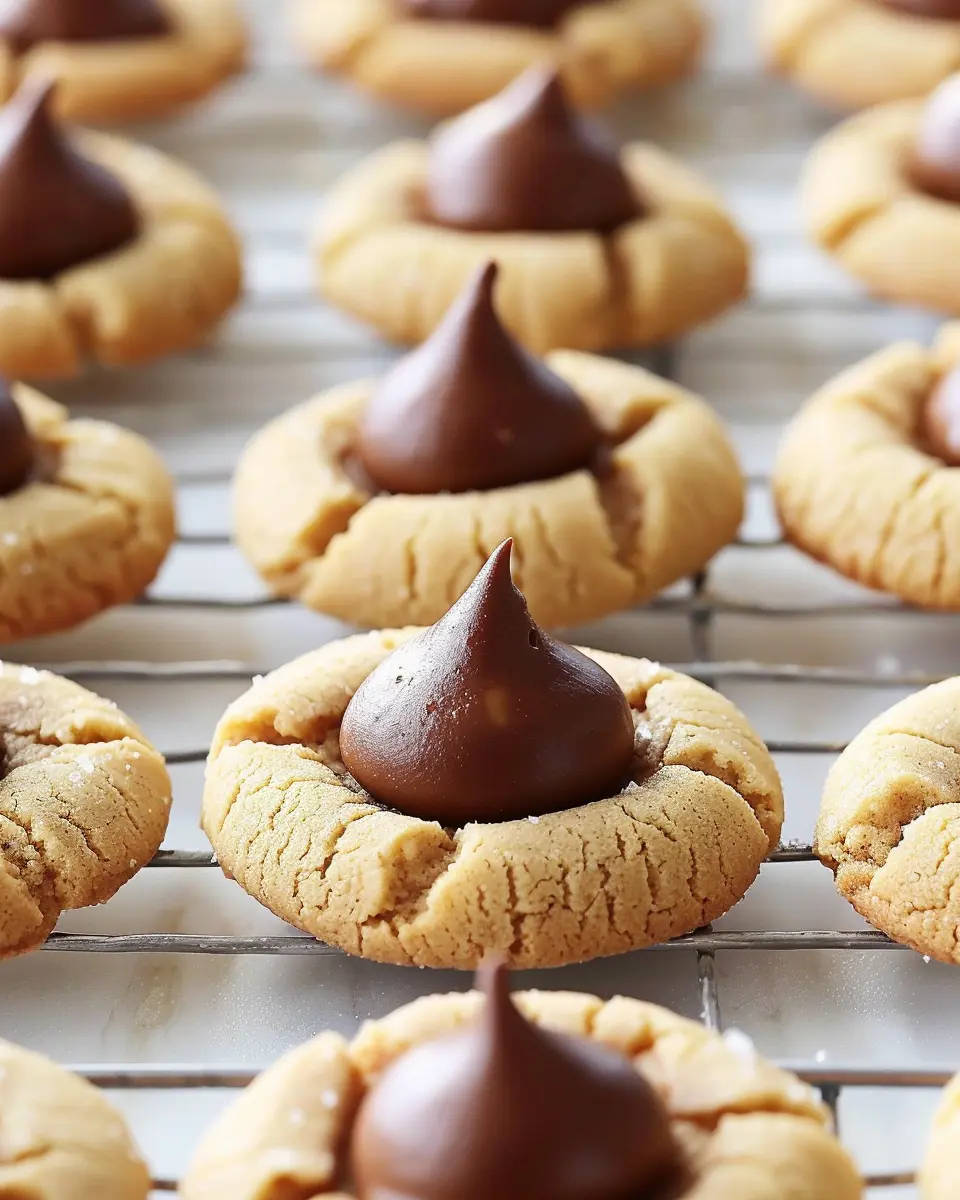 These Classic Peanut Butter Blossom Cookies are a delightful treat combining soft peanut butter cookies with chocolate kisses.