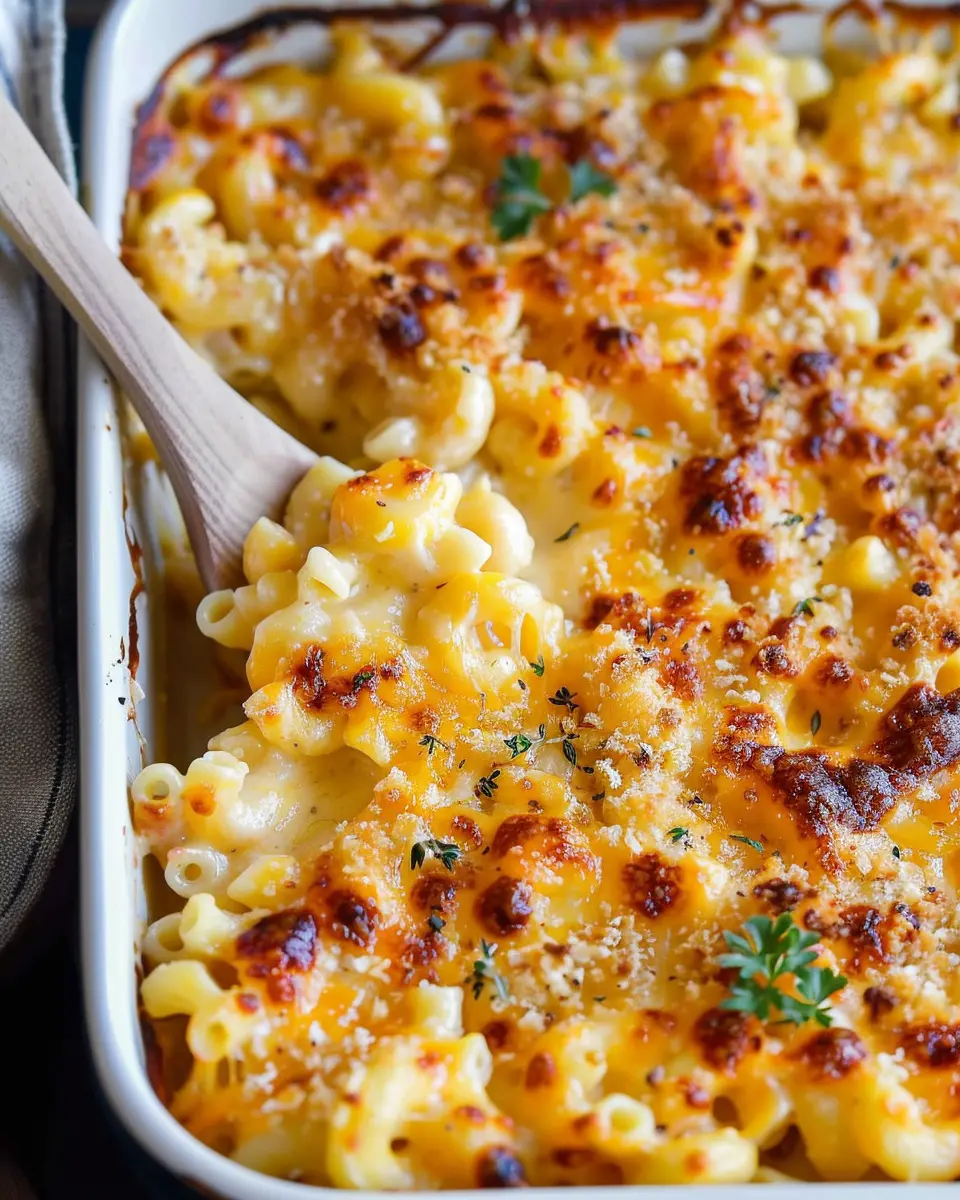 After removing your glorious baked mac and cheese from the oven, allow it to rest for about 5–10 minutes. This will give the sauce time to set up a bit, making for easier serving. Trust me; no one wants to face a soupy dish! When ready, scoop out generous portions and watch faces light up as they dig into this cheesy delight.