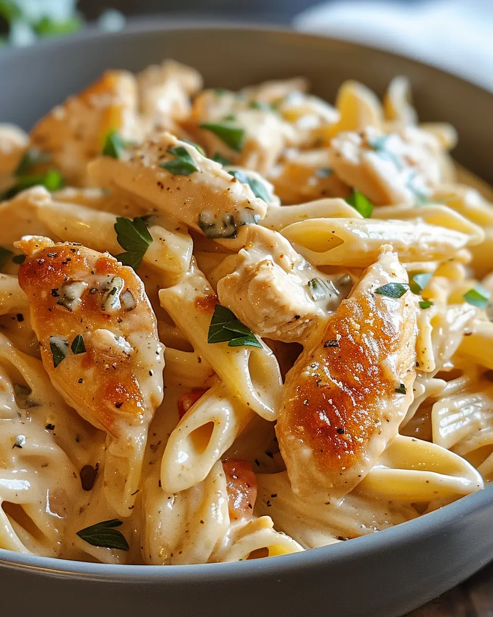 Indulge in this rich and creamy Cajun chicken pasta perfect for a weeknight dinner.