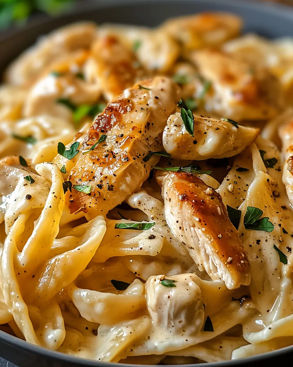 Simple Ingredients: Using accessible ingredients like chicken, pasta, and a blend of seasonings, this dish keeps your grocery trips easy and efficient. For a protein boost, opt for turkey bacon or chicken ham to enhance your meal without extra fuss.