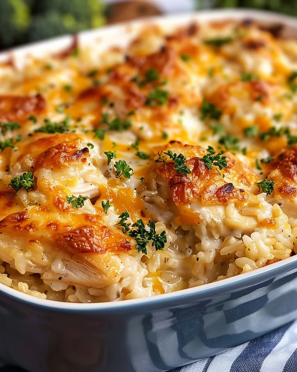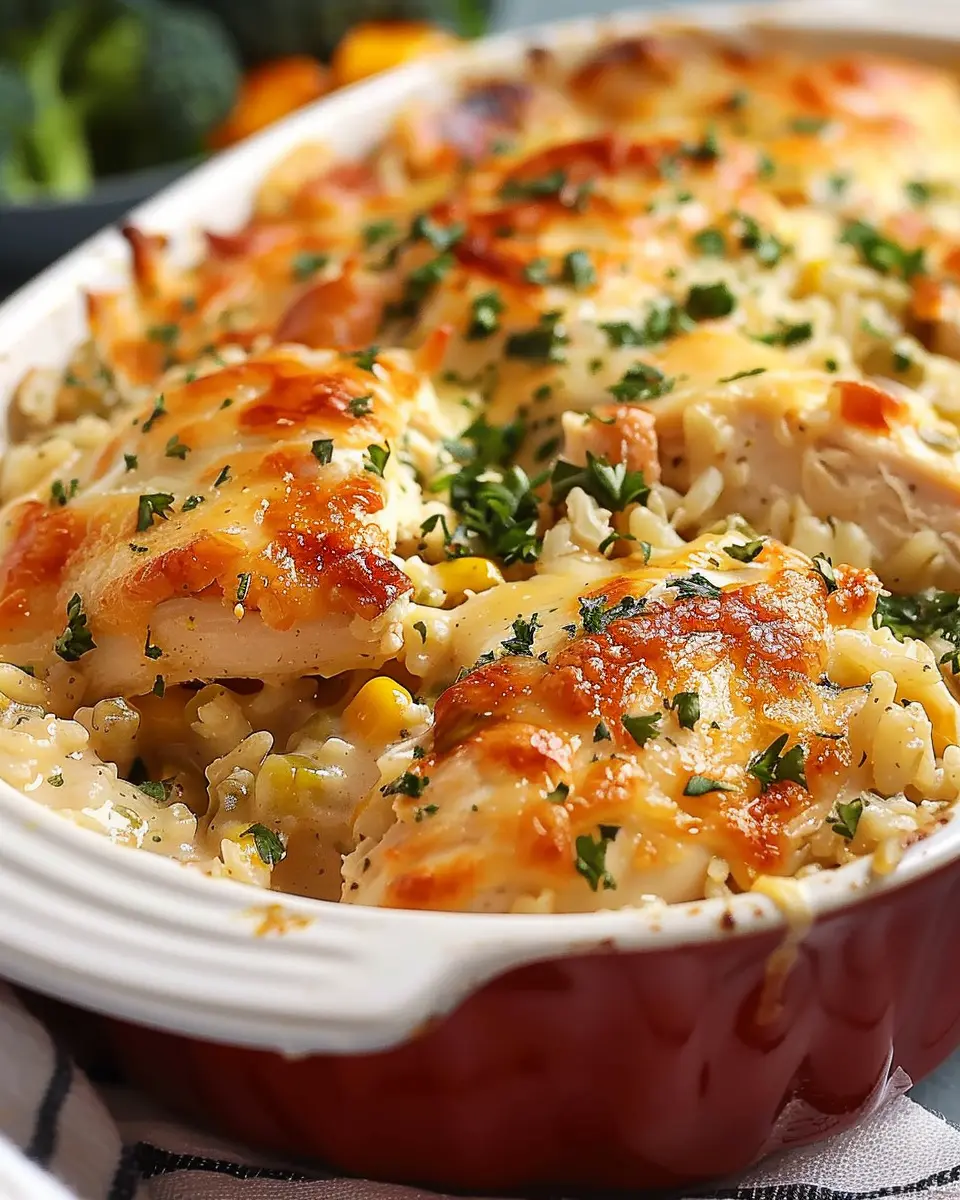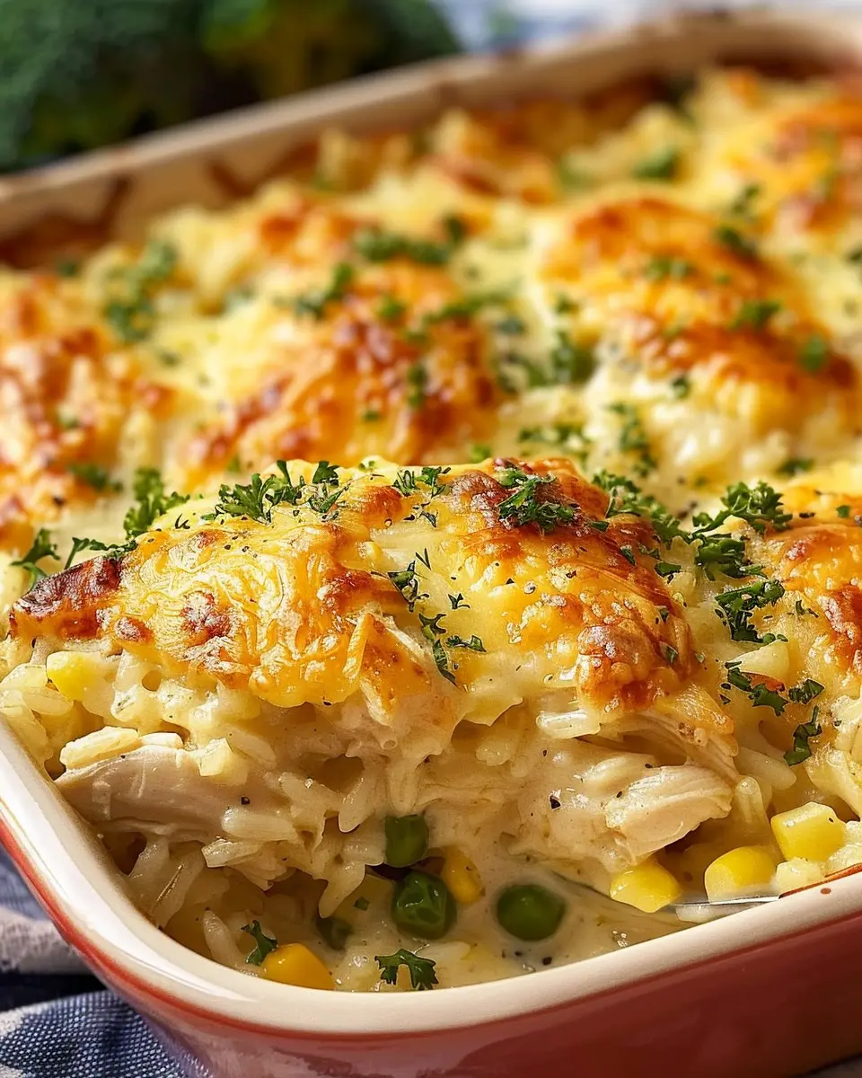 Lastly, there’s something undeniably comforting about baking a casserole. It fills your home with enticing aromas and brings everyone together. Whether it’s a quick dinner for one or a gathering with friends, this dish has the power to evoke warmth and nostalgia. So, grab your favorite baking dish, and let’s dive into the recipe for this creamy chicken and rice casserole that will quickly become a staple in your weeknight rotation!