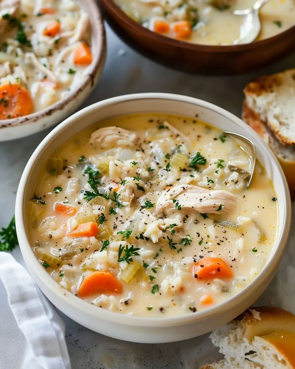 Keywords: Creamy Chicken and Rice Soup, Comfort Food, Chicken Soup