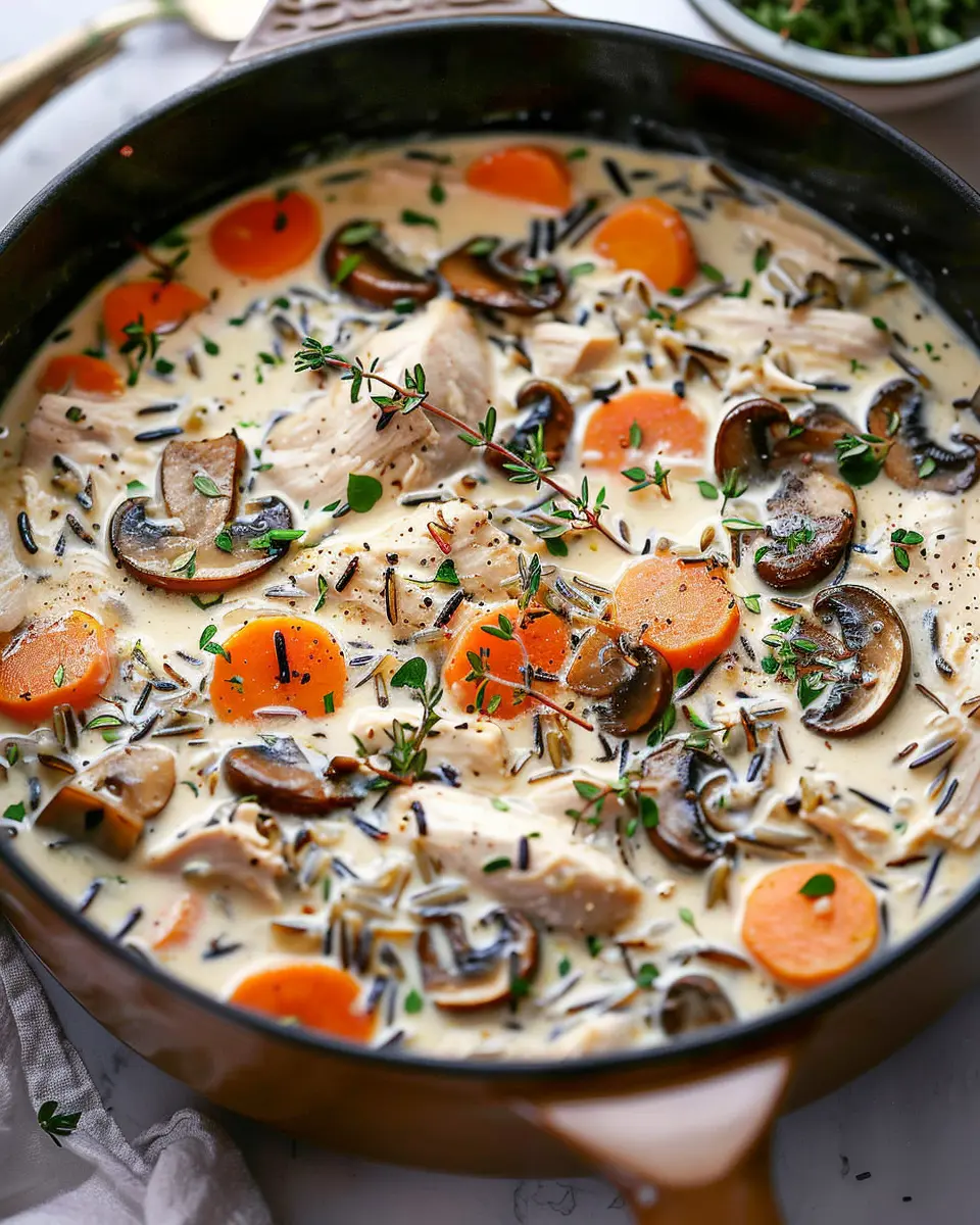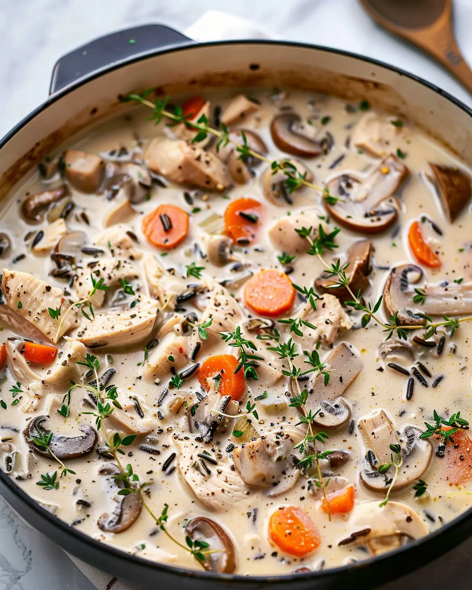 Creamy Chicken and Wild Rice Soup with Mushrooms