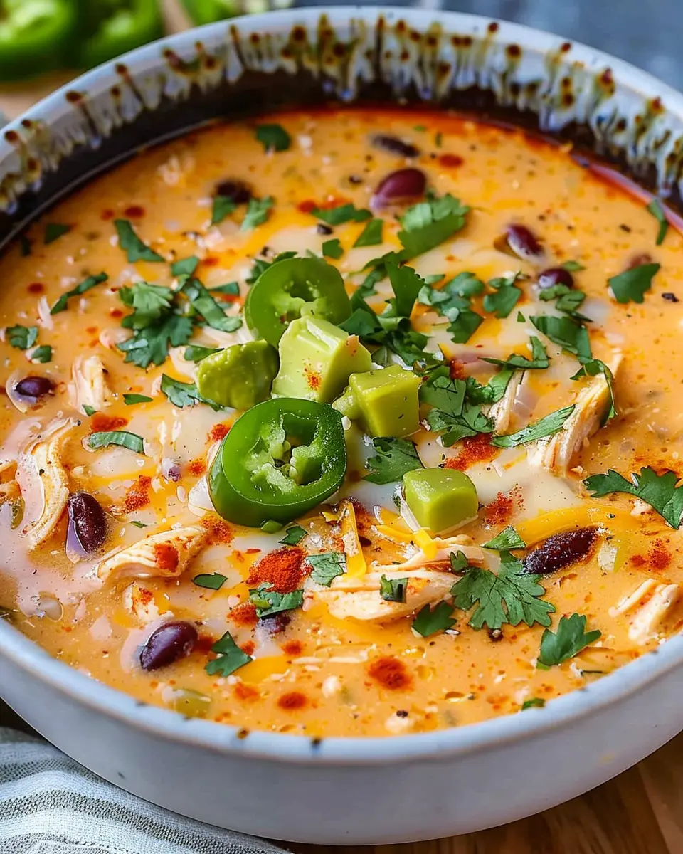 A warm and satisfying soup filled with creamy flavors and tender chicken, perfect for a weeknight meal.