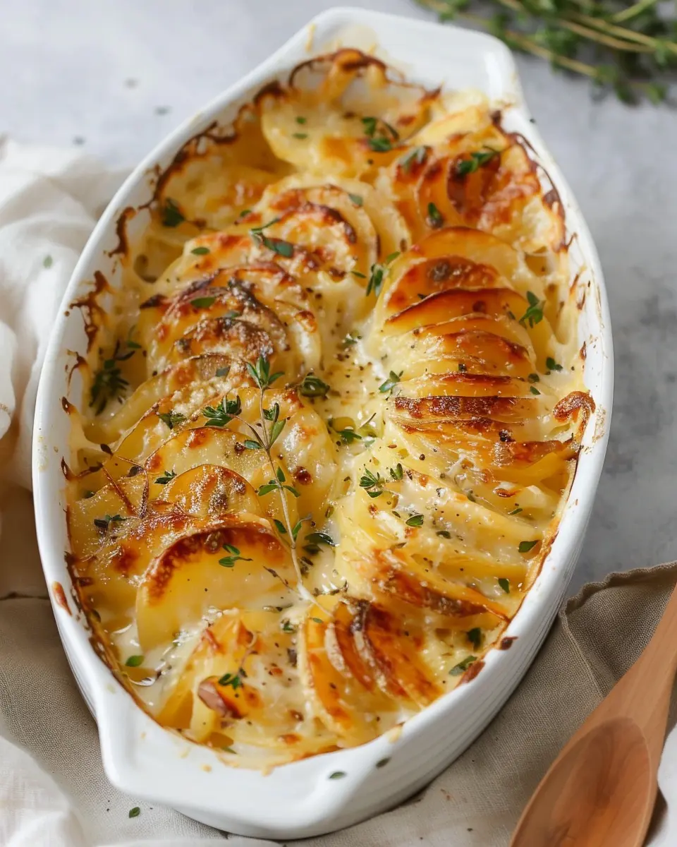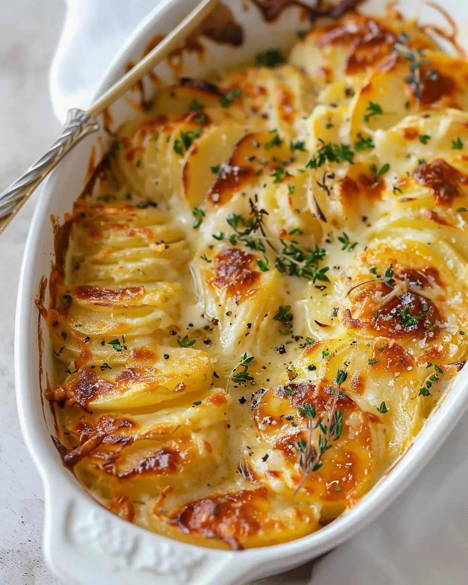 Place your dish in that preheated oven and bake for about 45 minutes, or until the top is beautifully golden and bubbly. To ensure all potatoes are fully cooked, you can test with a fork; it should glide right through. Let the dish rest for a few minutes before serving—this will help the creamy goodness set a bit, making it easier to serve.