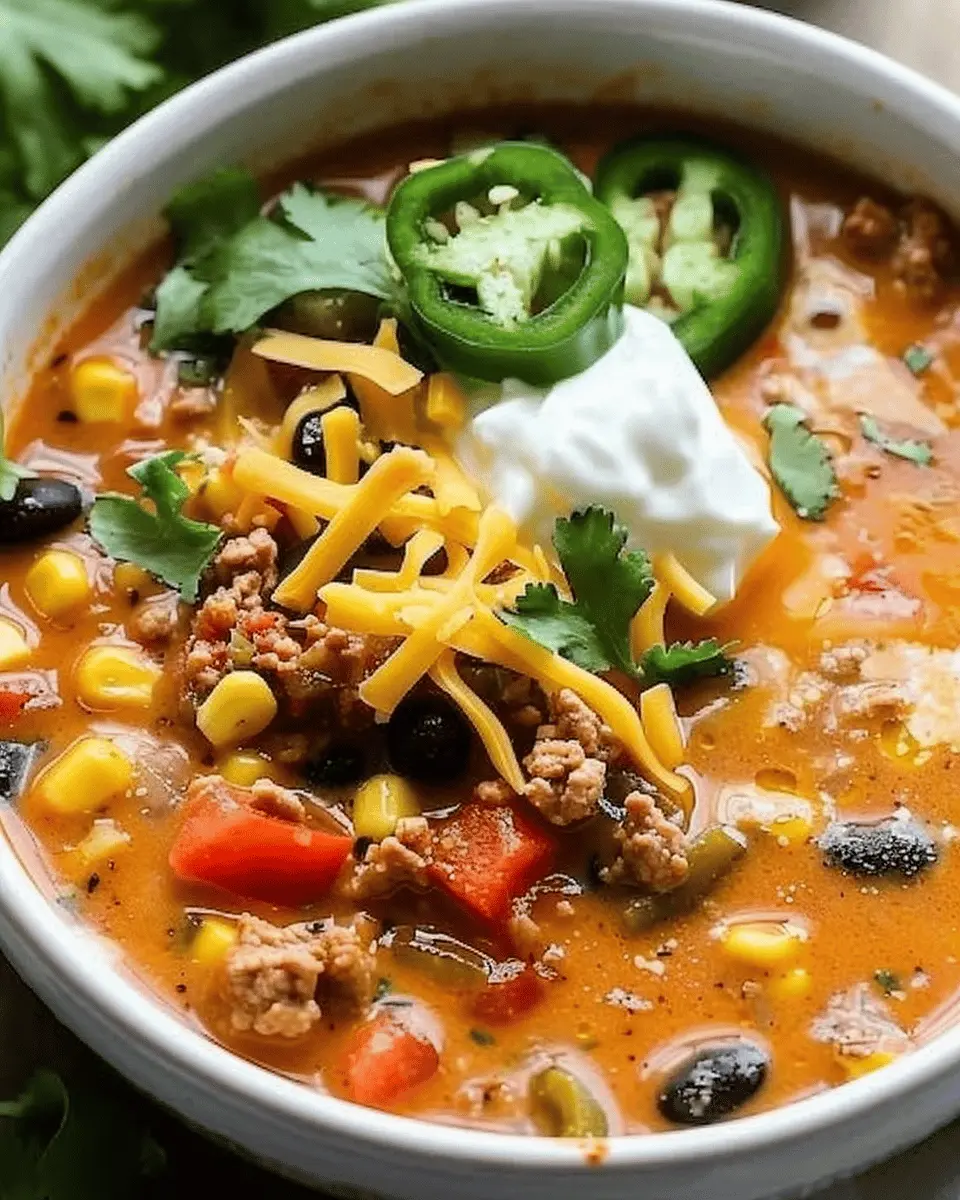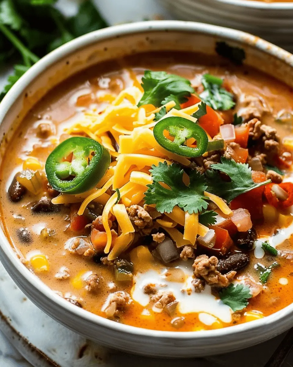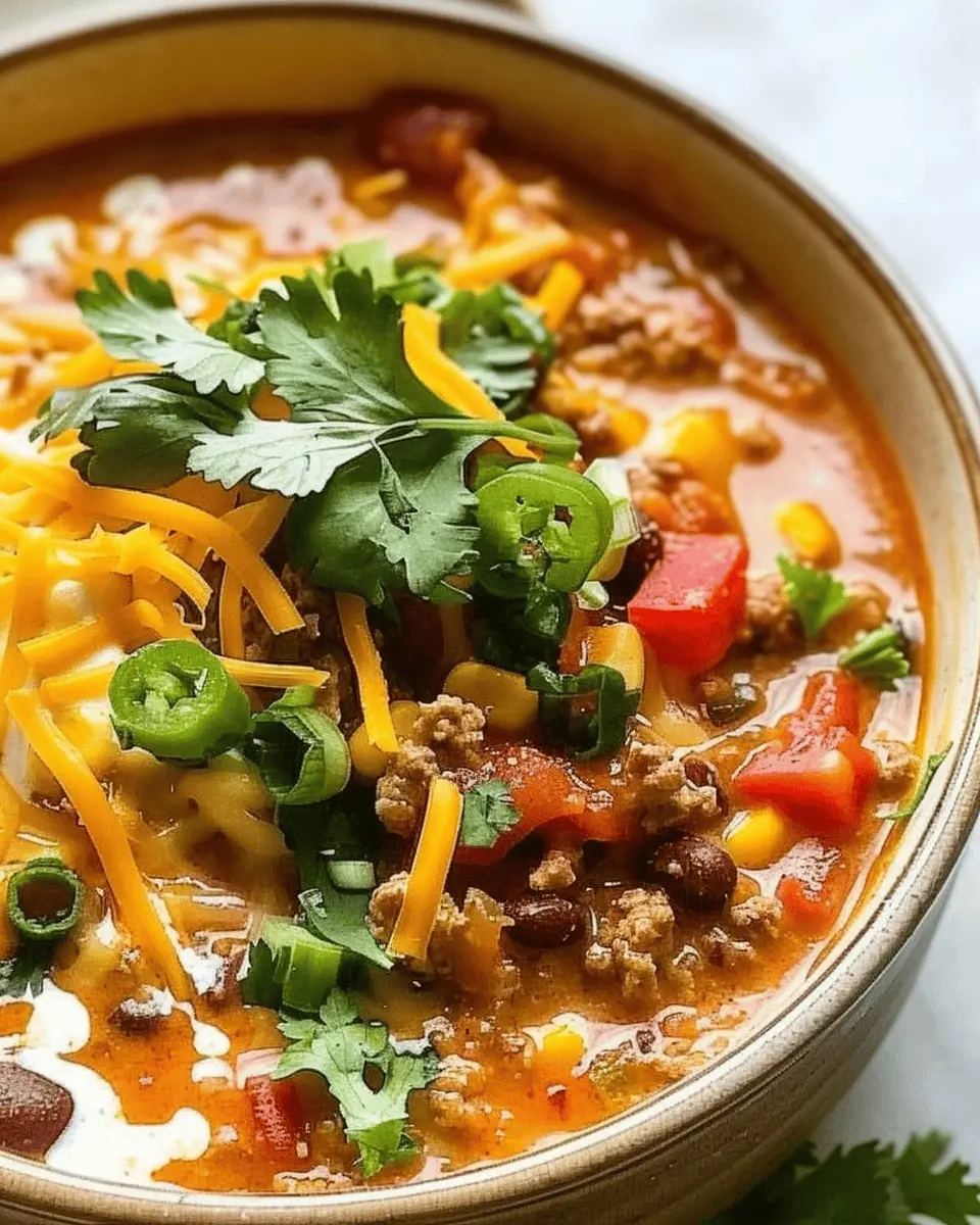 PrintCreamy Taco Soup: The Best Comfort Dish with Turkey Bacon