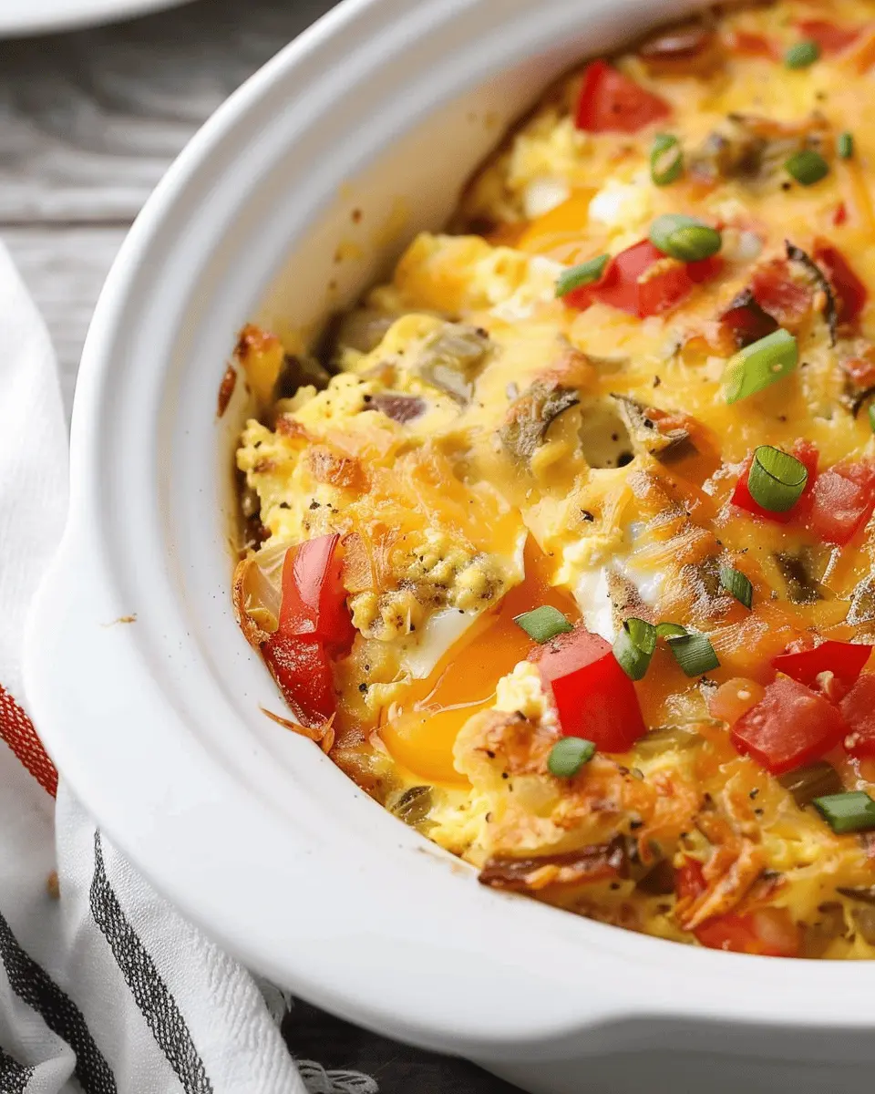 A delicious and easy recipe for a hearty breakfast casserole cooked in a crockpot.