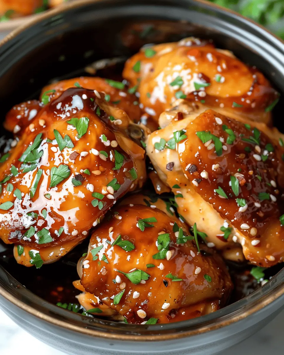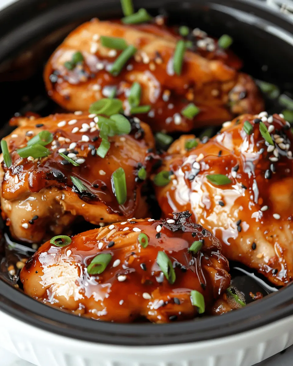 Once your chicken is cooked, shred it with two forks and mix it well with the sauce. Serve it over steamed rice or with a side of roasted vegetables for a complete meal. Don’t forget to sprinkle some chopped green onions and sesame seeds on top for that finishing touch!