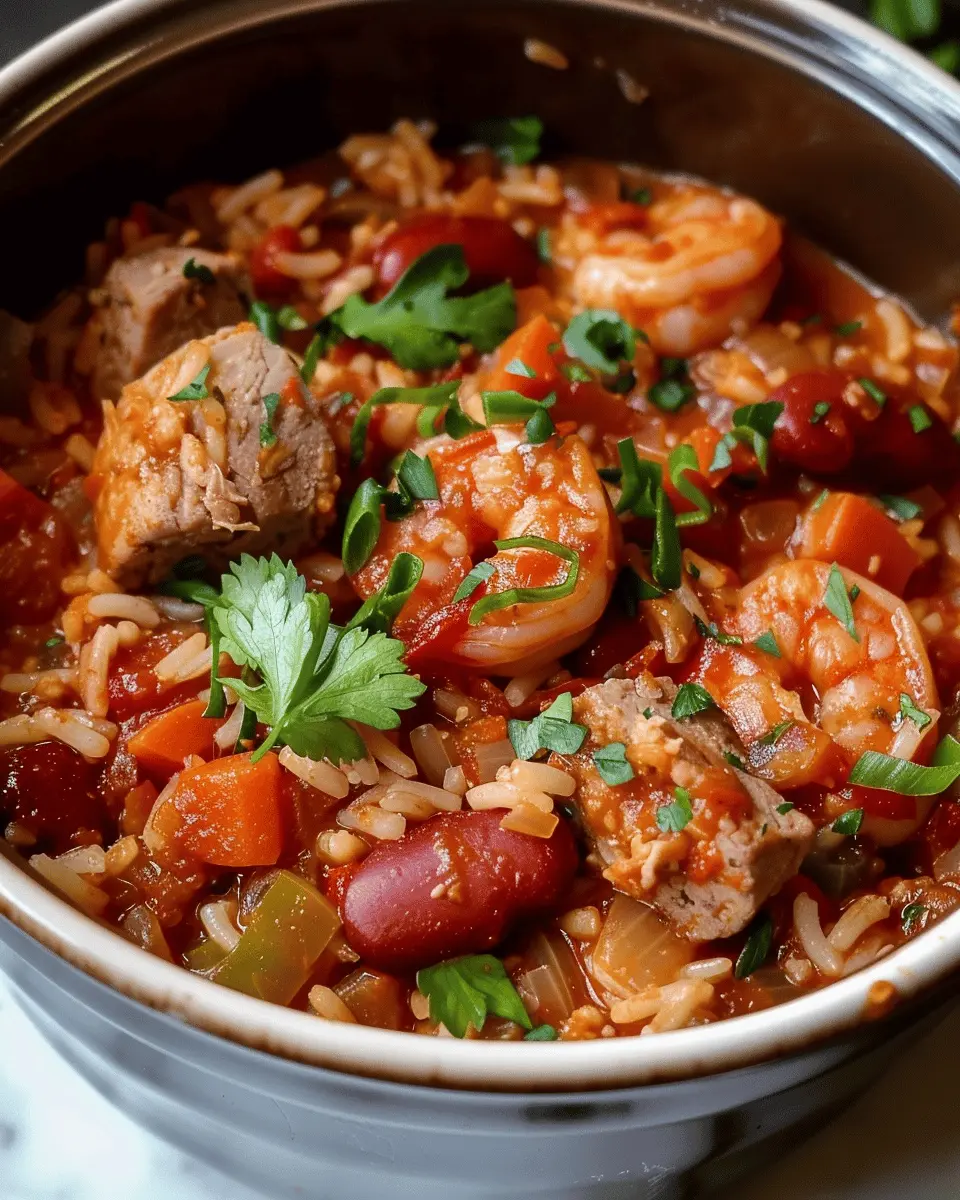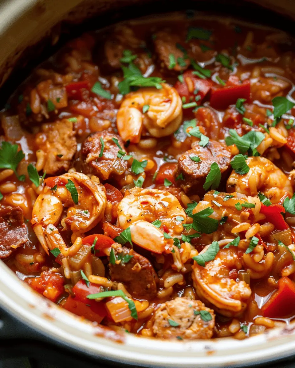 If you’re looking for a meat-free option, vegetarian jambalaya is a fabulous alternative! This variation replaces traditional proteins with hearty vegetables and legumes. Think bell peppers, zucchini, and black beans. You can also sneak in some protein-packed quinoa to elevate the dish. With a generous helping of Cajun seasoning, your dump and go crockpot jambalaya will be bursting with flavor. For an added twist, toss in some frozen okra for that Southern flair.