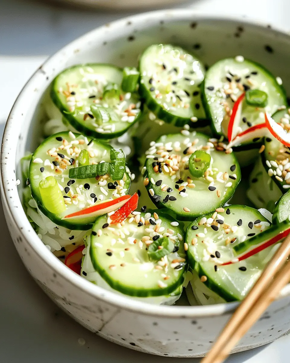 If you have leftovers, store your easy California roll cucumber salad in an airtight container in the refrigerator. It should keep well for up to two days. To maintain the crispiness of your cucumbers, consider keeping the dressing separate until you’re ready to dig in. This simple trick will prevent your salad from becoming soggy. Need more food storage tips? Check out resources like the USDA’s food safety guidelines here. It’s a great way to ensure your meals remain fresh and tasty!