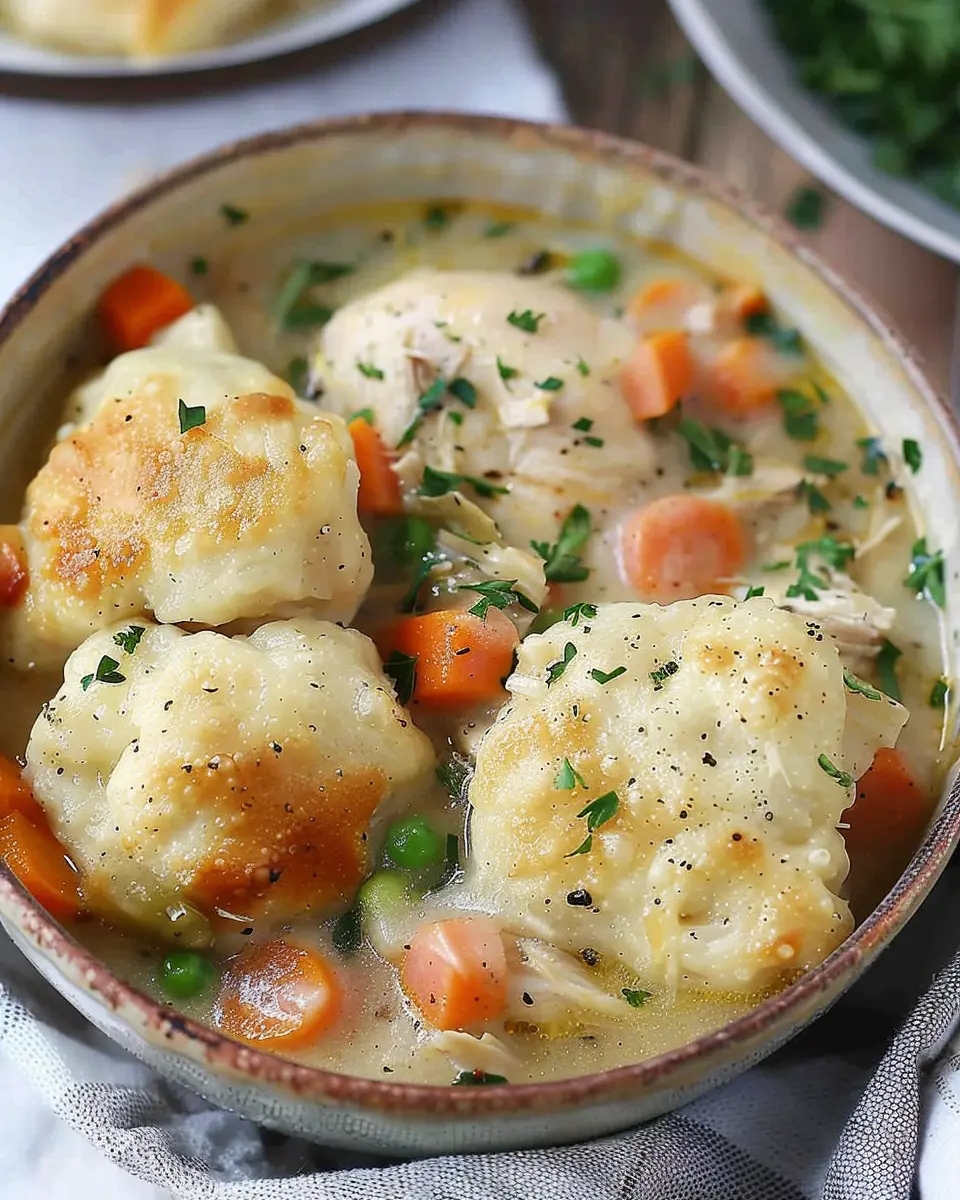 Storing leftovers of your easy chicken and dumplings is simple! Let the dish cool to room temperature, then transfer it to an airtight container. It can be kept in the refrigerator for 3-4 days. For longer storage, consider freezing it — just make sure to use freezer-safe containers or bags. When you’re ready to enjoy it again, thaw it in the fridge overnight and reheat it gently on the stove, adding a splash of broth or water to keep the dumplings from drying out.