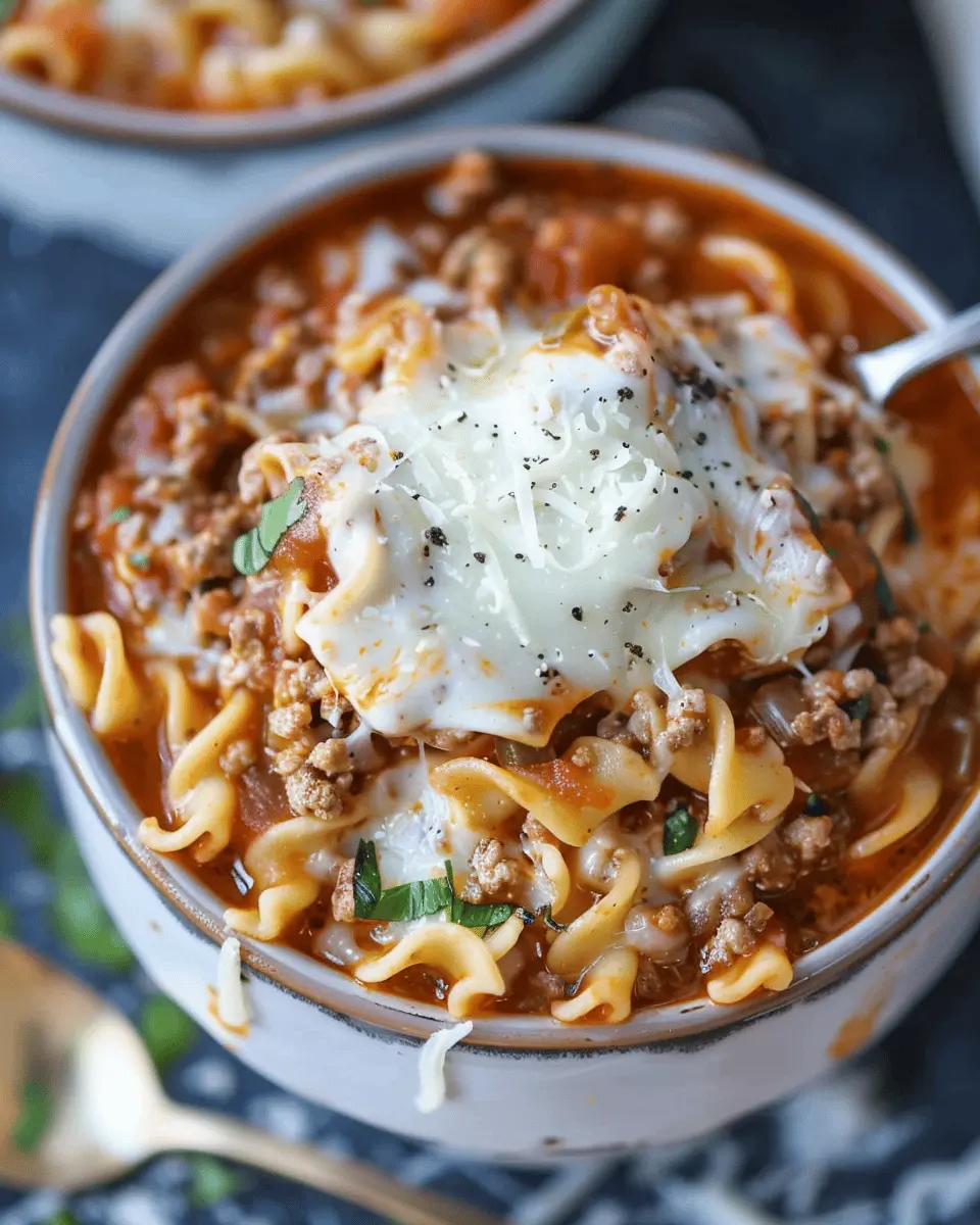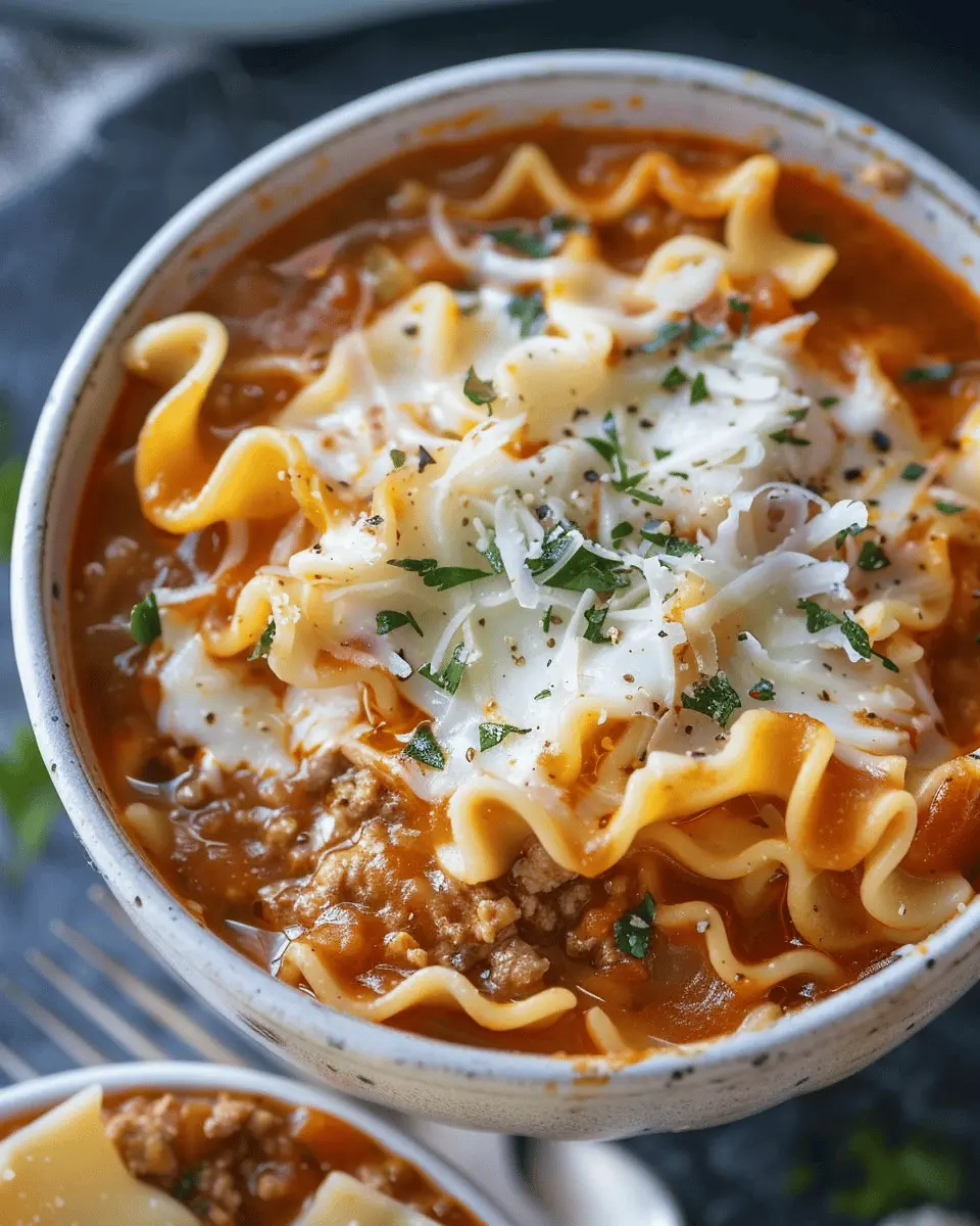 After a long day at work, the last thing you want to do is spend hours in the kitchen. This is where lasagna soup shines. In about 30 minutes, you can enjoy a hearty bowl packed with layers of flavor. The combination of tender pasta, savory ground beef, and melty cheese will warm you from the inside out.