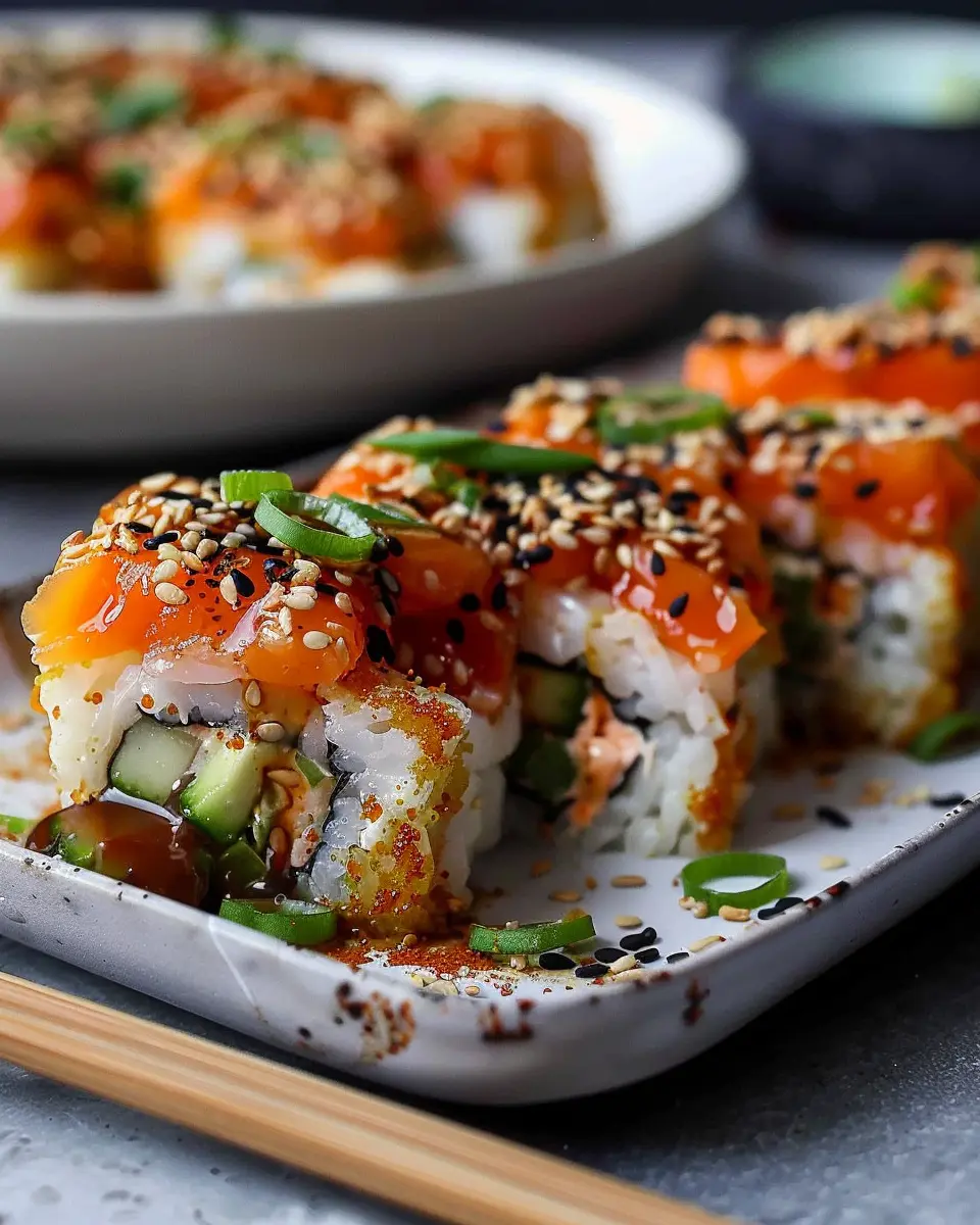 Blend these ingredients and layer them over your rice base, garnishing with green onions and sesame seeds for that extra flavor punch. If you’re interested, you can find some great tips on creating the perfect spicy mayo here.