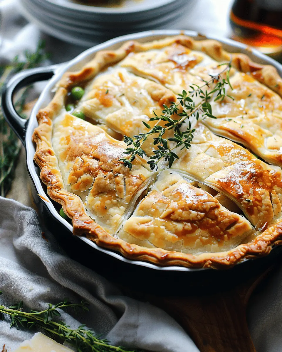 A delicious twist on classic pot pie that combines French flavors with comforting ingredients.