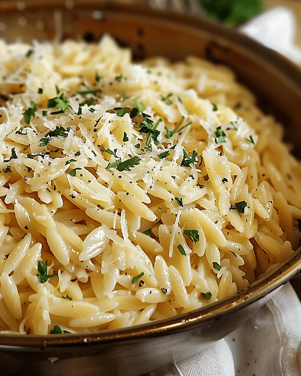 PrintGarlic Parmesan Orzo Pasta Recipe: Easy Comfort Food Delight