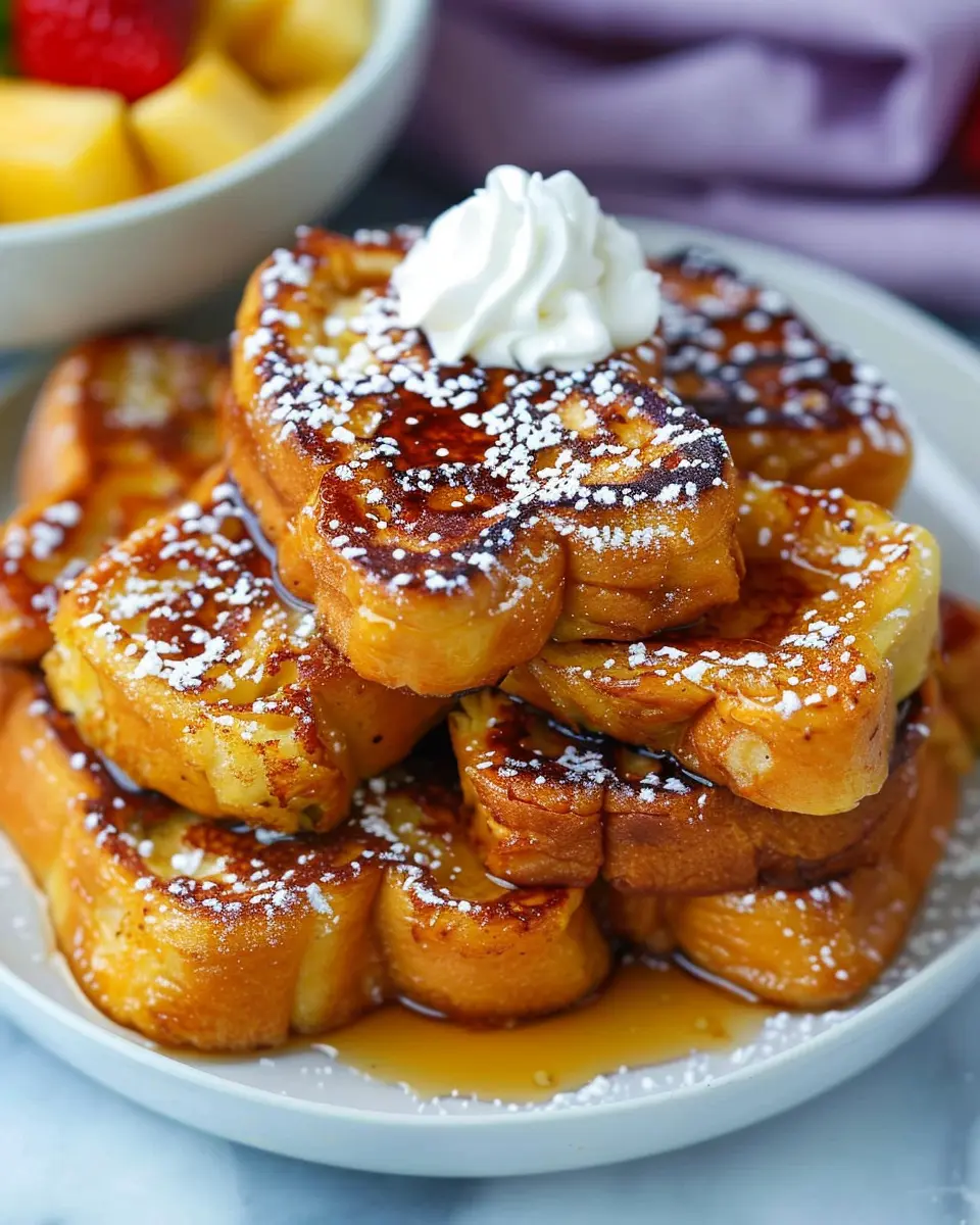Don’t forget the toppings! Drizzle maple syrup or a fruit compote over your French toast. A sprinkle of powdered sugar or a dollop of whipped cream can elevate the dish, making it truly indulgent.