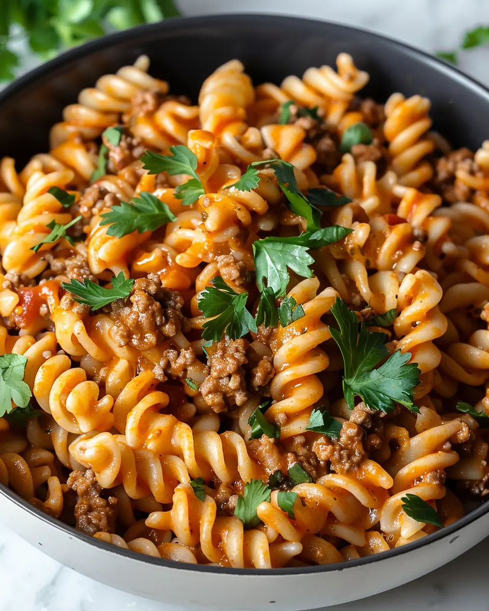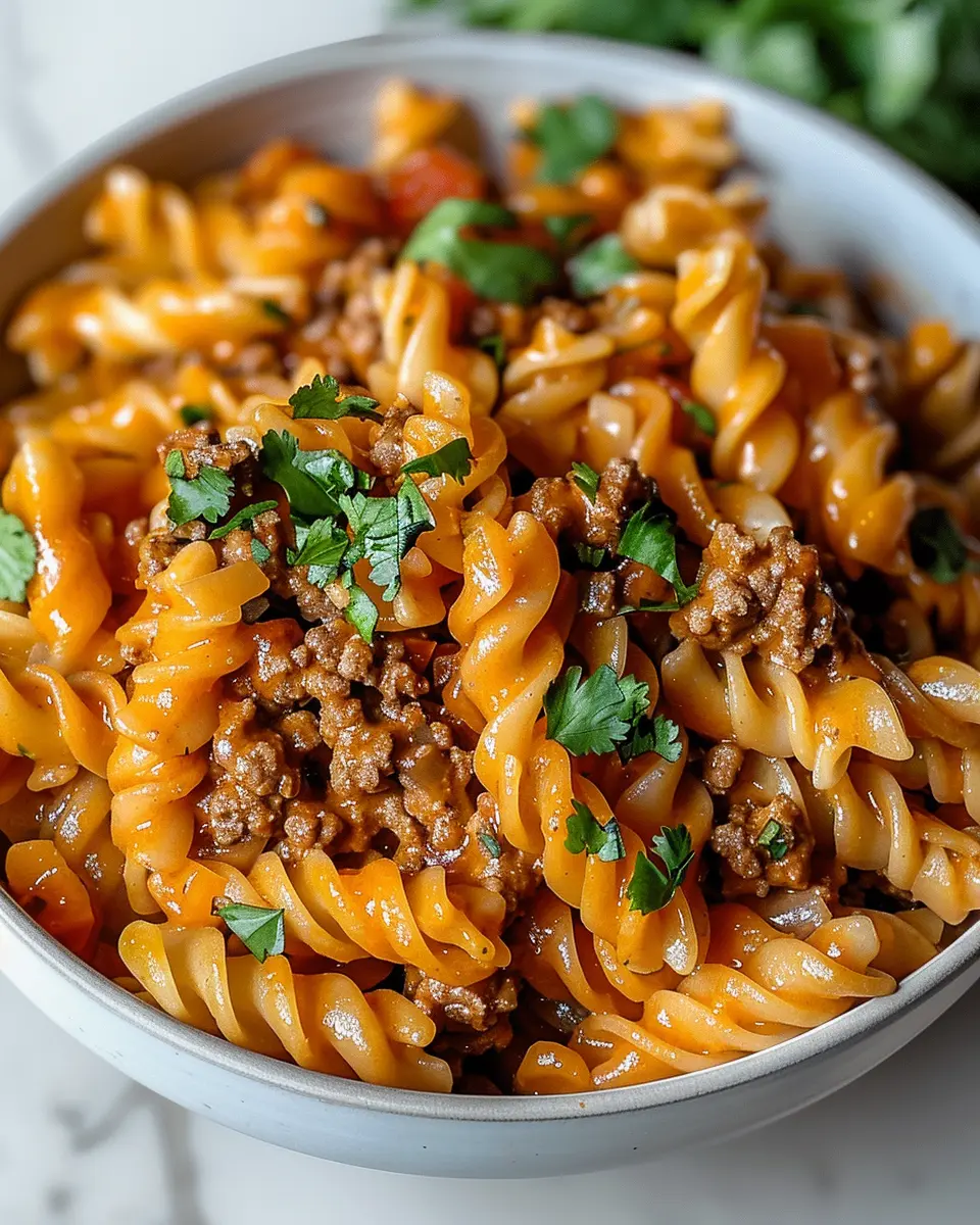 Now comes the fun part! Combine your cooked rotini, browned beef, and that luscious creamy mixture in a large bowl. Mix it all together until every pasta piece is generously coated. If it feels a bit too thick, that reserved pasta water you saved will come in handy! Just a splash at a time can adjust the creaminess to your liking.