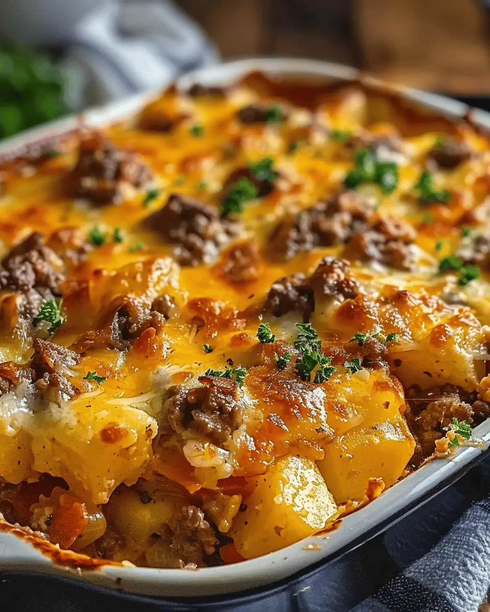 Once done, let the casserole sit for about 5 to 10 minutes before serving. This will allow the layers to set a bit for easier serving. You can garnish with fresh herbs like parsley if you’re feeling fancy. Serve it with a side salad or some crusty bread, and enjoy this hearty, comforting dish with friends or family!