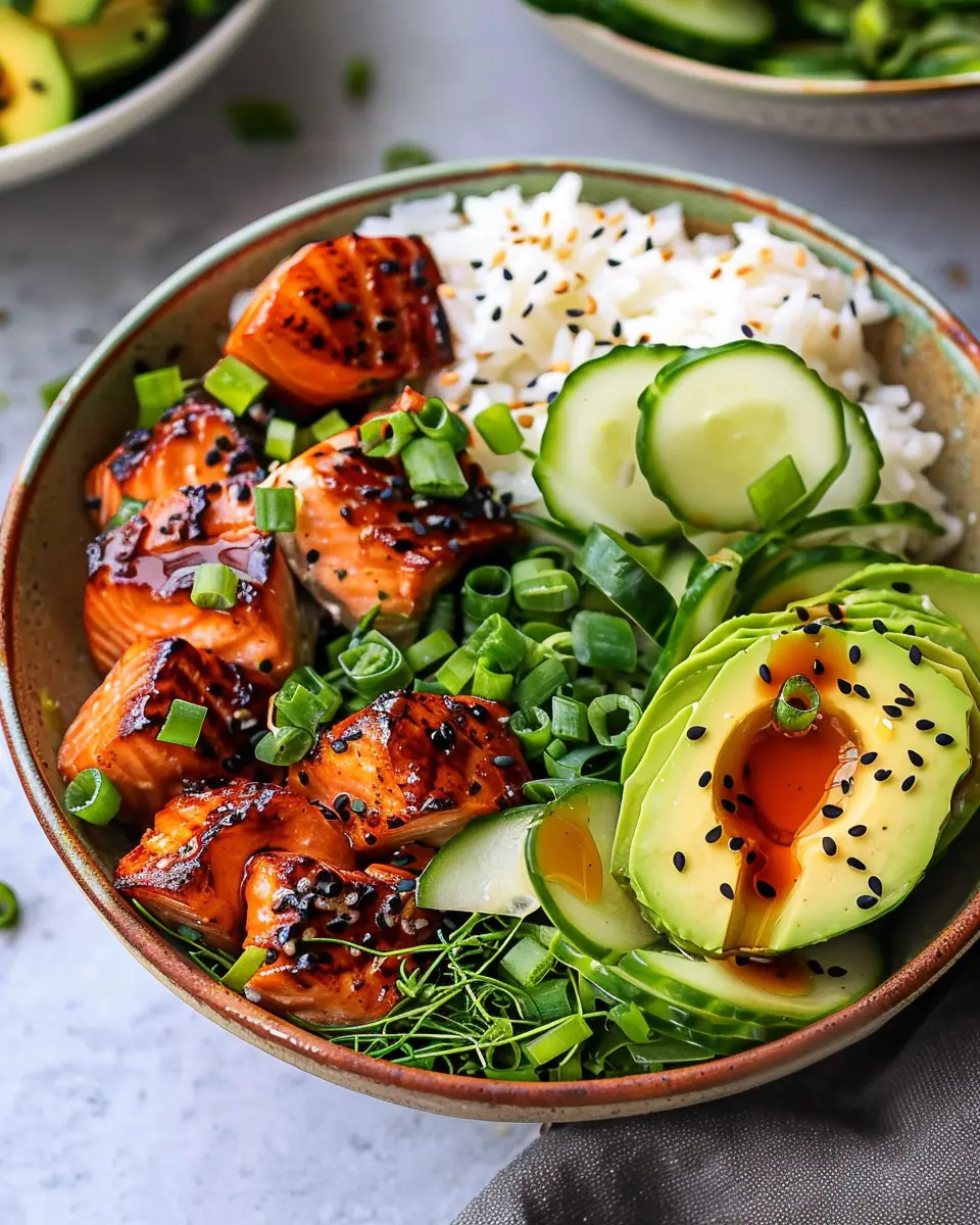 Homemade salmon bowls bring a host of health benefits. Salmon is rich in omega-3 fatty acids, which are essential for heart health. According to the American Heart Association, incorporating two servings of fatty fish like salmon into your diet weekly can significantly lower your risk of heart disease. Coupled with the antioxidants from colorful vegetables, your meal will be as nourishing as it is tasty.