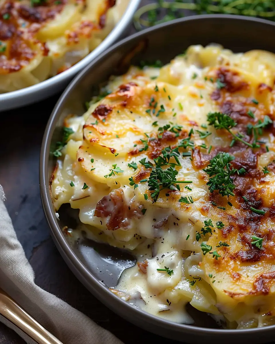 PrintLoaded Scalloped Potatoes: Indulgent Recipe with Turkey Bacon and Chicken Ham
