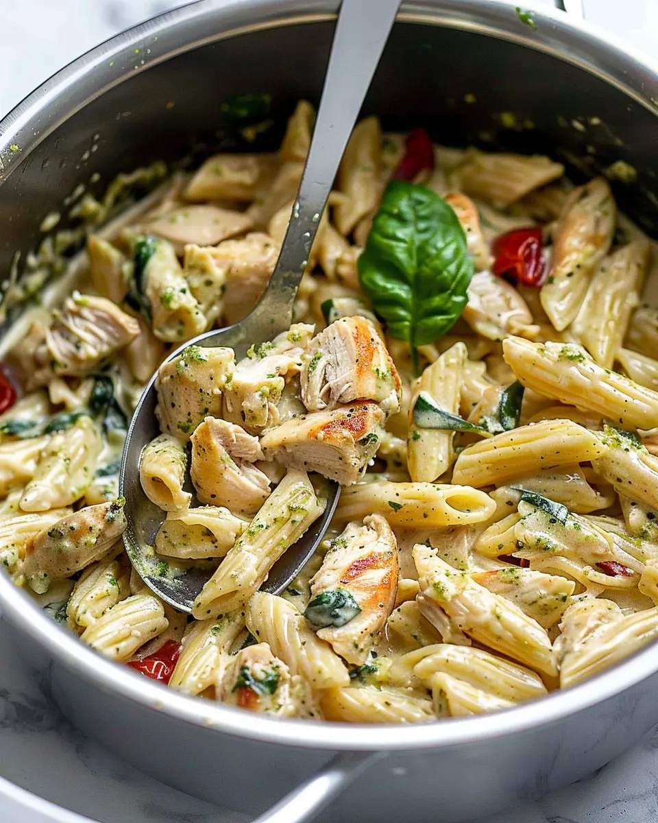 A delicious and easy recipe for One Pot Creamy Pesto Chicken Pasta that brings together flavors in one satisfying dish.