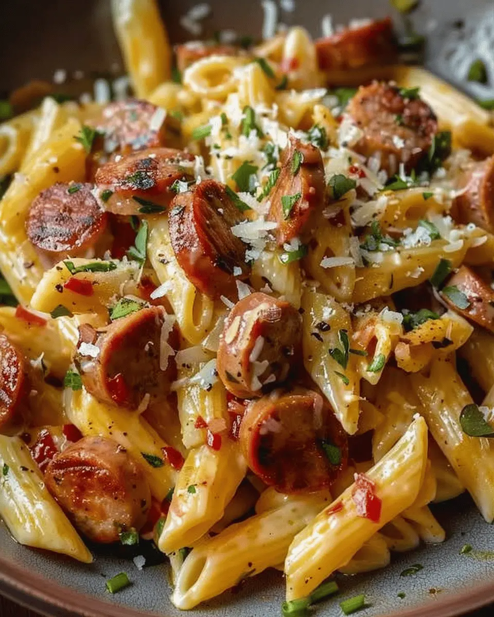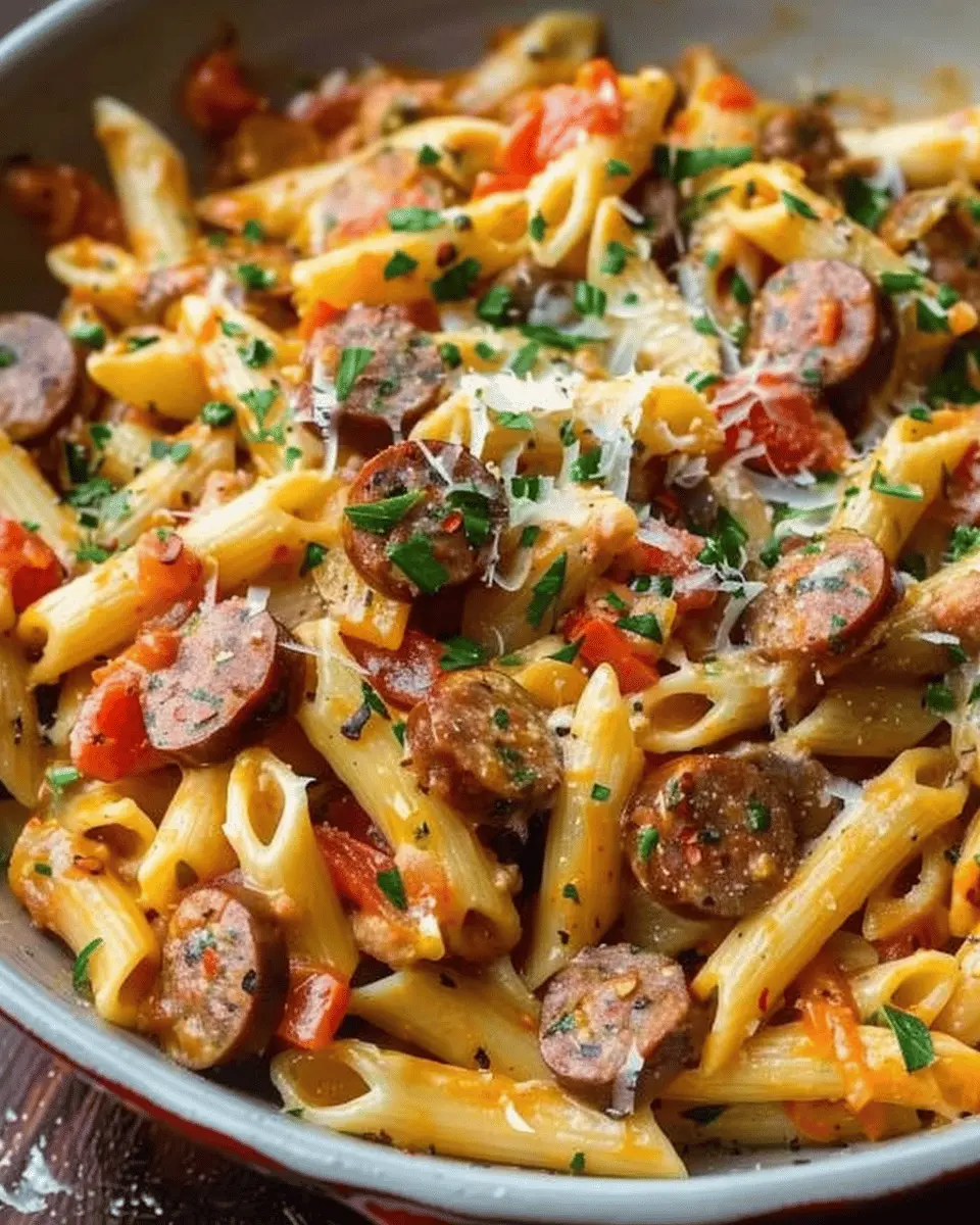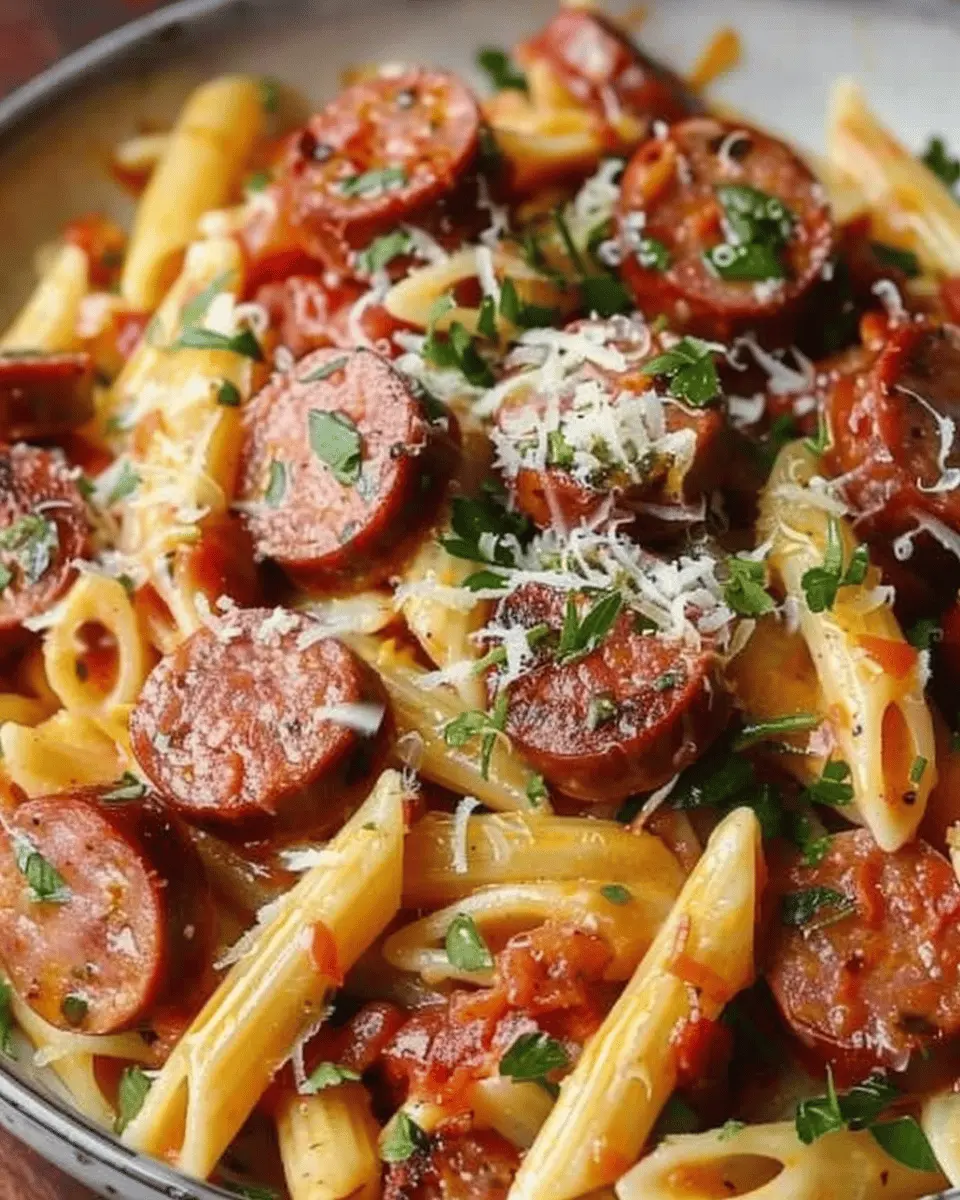 PrintOne Pot Smoked Sausage Pasta: Easy Family Dinner Delight