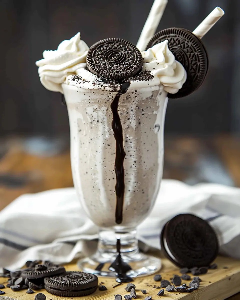 Your Oreo milkshake is finally ready to make its grand entrance! Pour it into tall glasses, and don’t skimp on presentation. Consider topping it with whipped cream, a sprinkle of crushed Oreos, and a drizzle of chocolate syrup. Making it visually appealing gives it that restaurant-worthy touch right at home.
