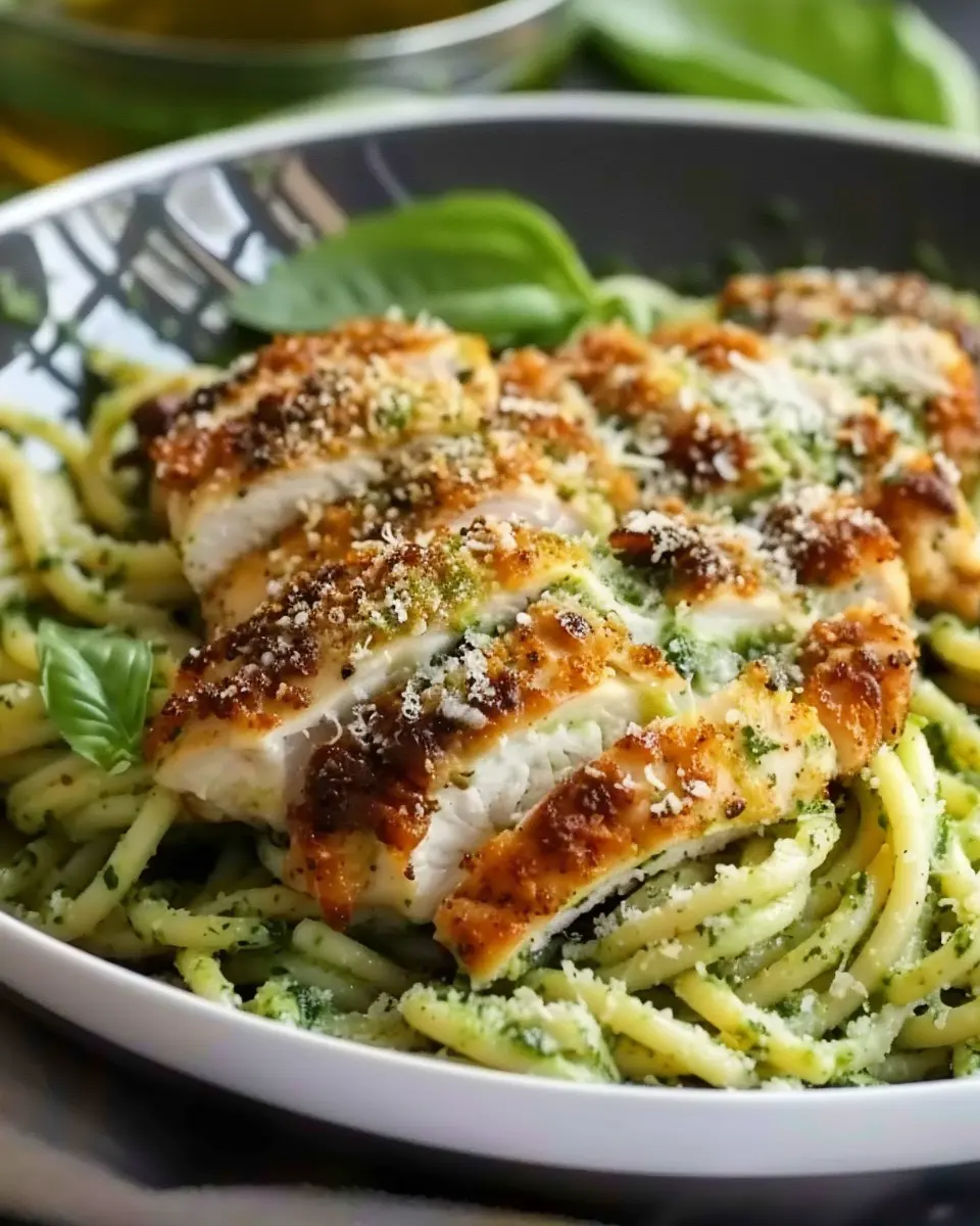 PrintPesto Pasta with Crispy Parmesan Chicken: A Flavorful Delight