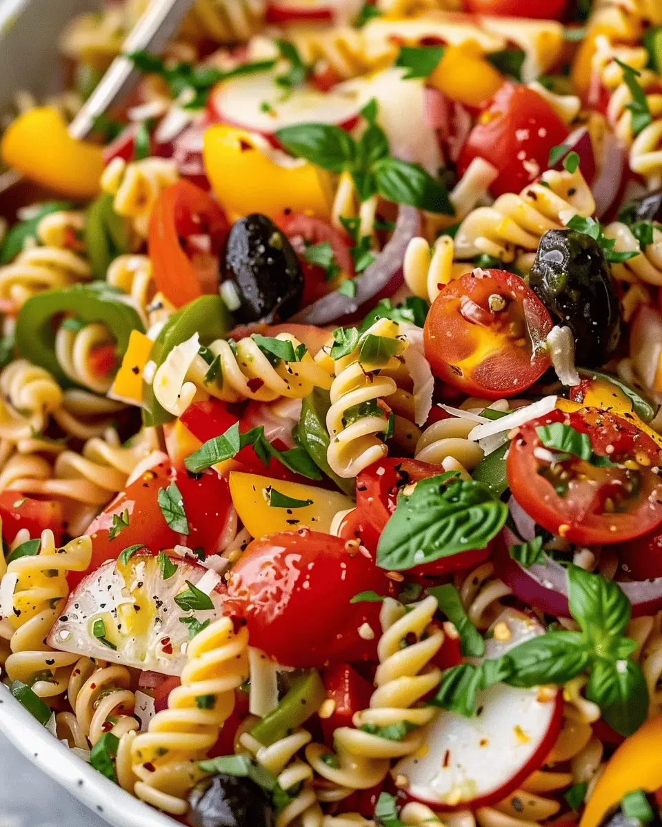 And let’s not forget about the flavor dimension. Each bite of this pasta salad bursts with the essence of Italian cuisine, thanks to fresh herbs like basil and a zesty vinaigrette that ties everything together. So the next time you’re in a rush, skip the takeout and reach for this vibrant, fulfilling meal that will leave you satisfied and ready to take on the world.