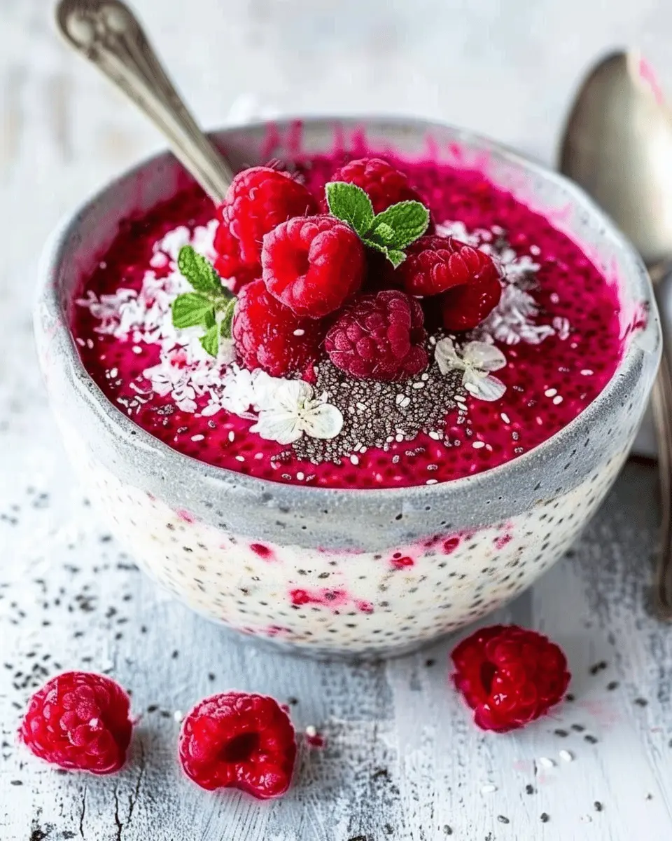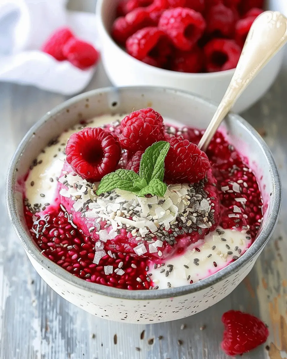 Simply blend the coconut milk with raspberries, then stir in the chia seeds and pineapple. Let it sit overnight for that perfect texture! You can also top it with shredded coconut or fresh mint for an extra flair.