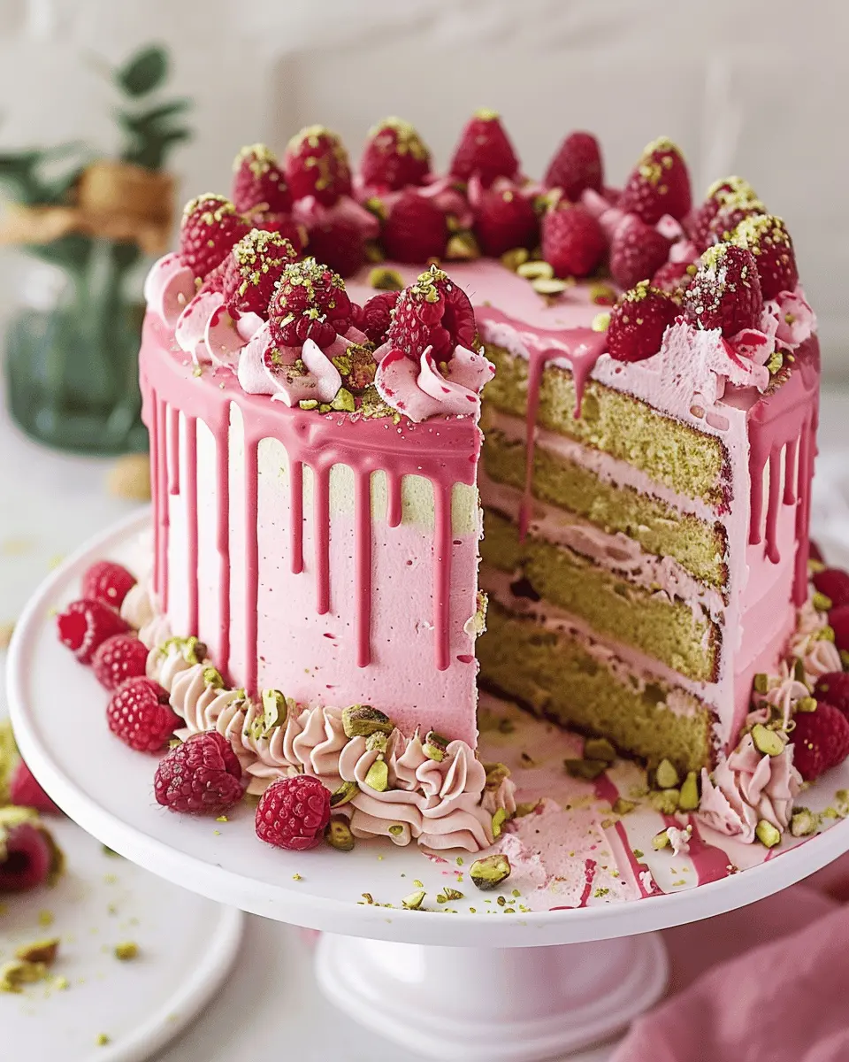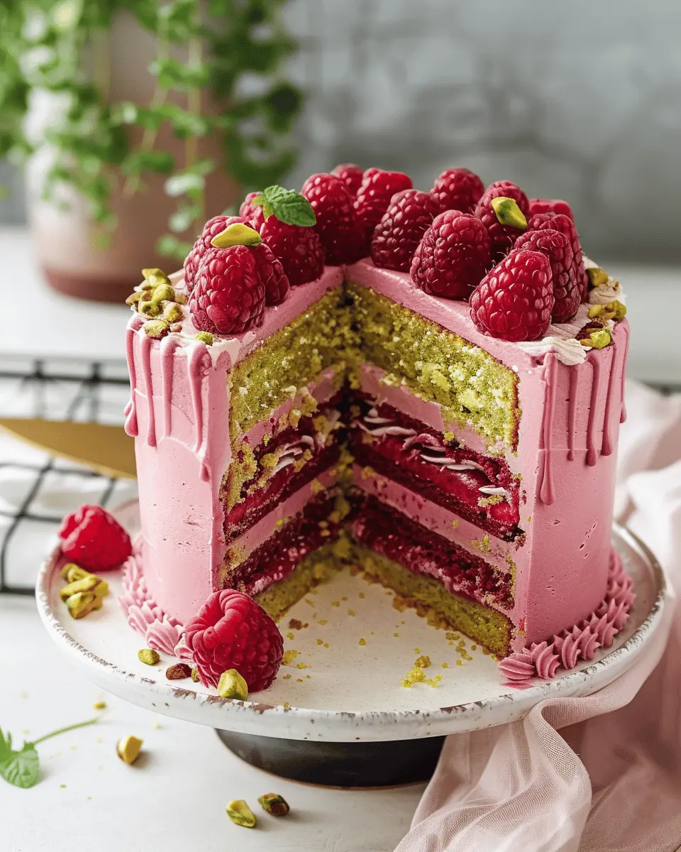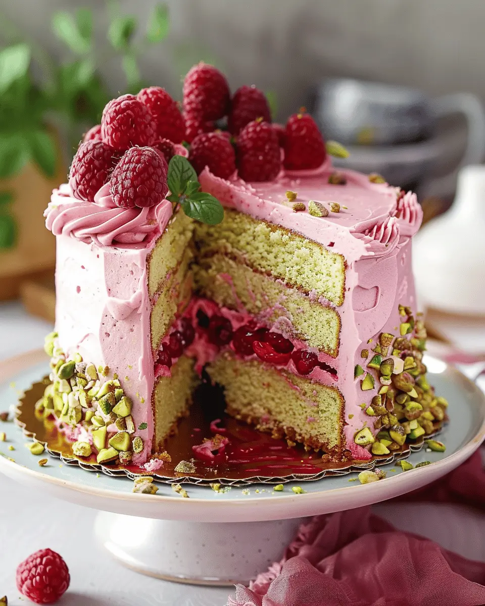 PrintRaspberry Pistachio Cake: Easy Recipe for a Decadent Dessert