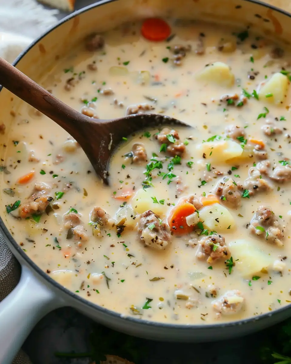 Looking for a meat-free option? No problem! For a creamy vegetarian version, swap the sausage for plant-based sausage or just load up on veggies like carrots, celery, and corn. Use coconut milk or cashew cream for a rich, creamy texture without the dairy. Toss in some fresh herbs like thyme or parsley and don’t forget to check the seasoning. This soup isn’t just tasty; it’s a wholesome meal that can fit into a balanced diet.