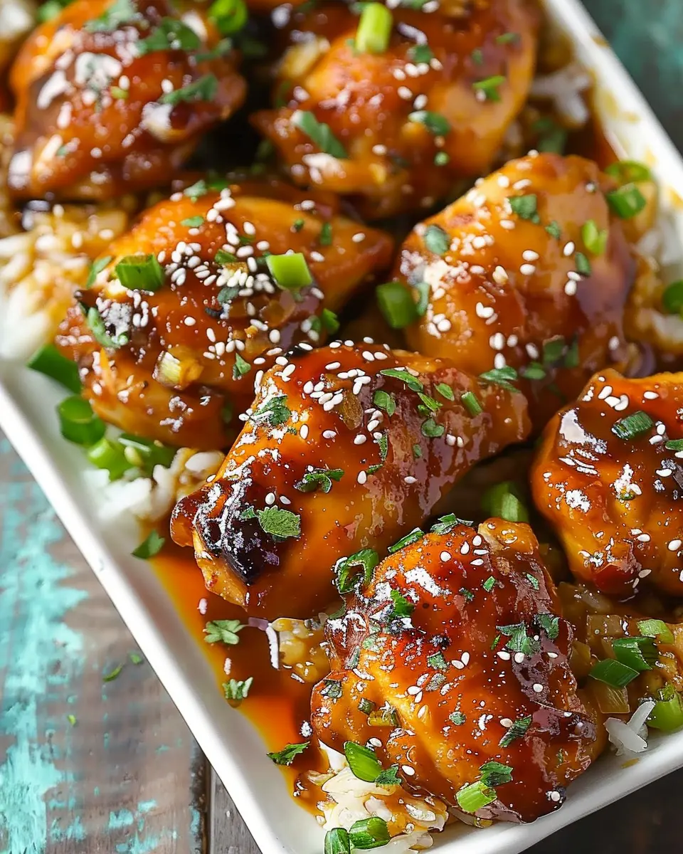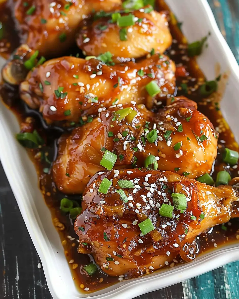 To wow your guests, presentation is key. Serve your slow cooker honey garlic chicken on a large platter, drizzling extra sauce over the top. Garnish with: