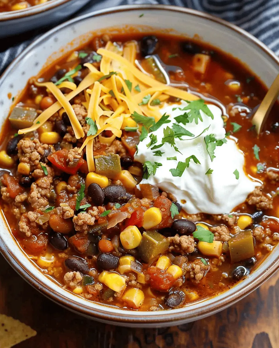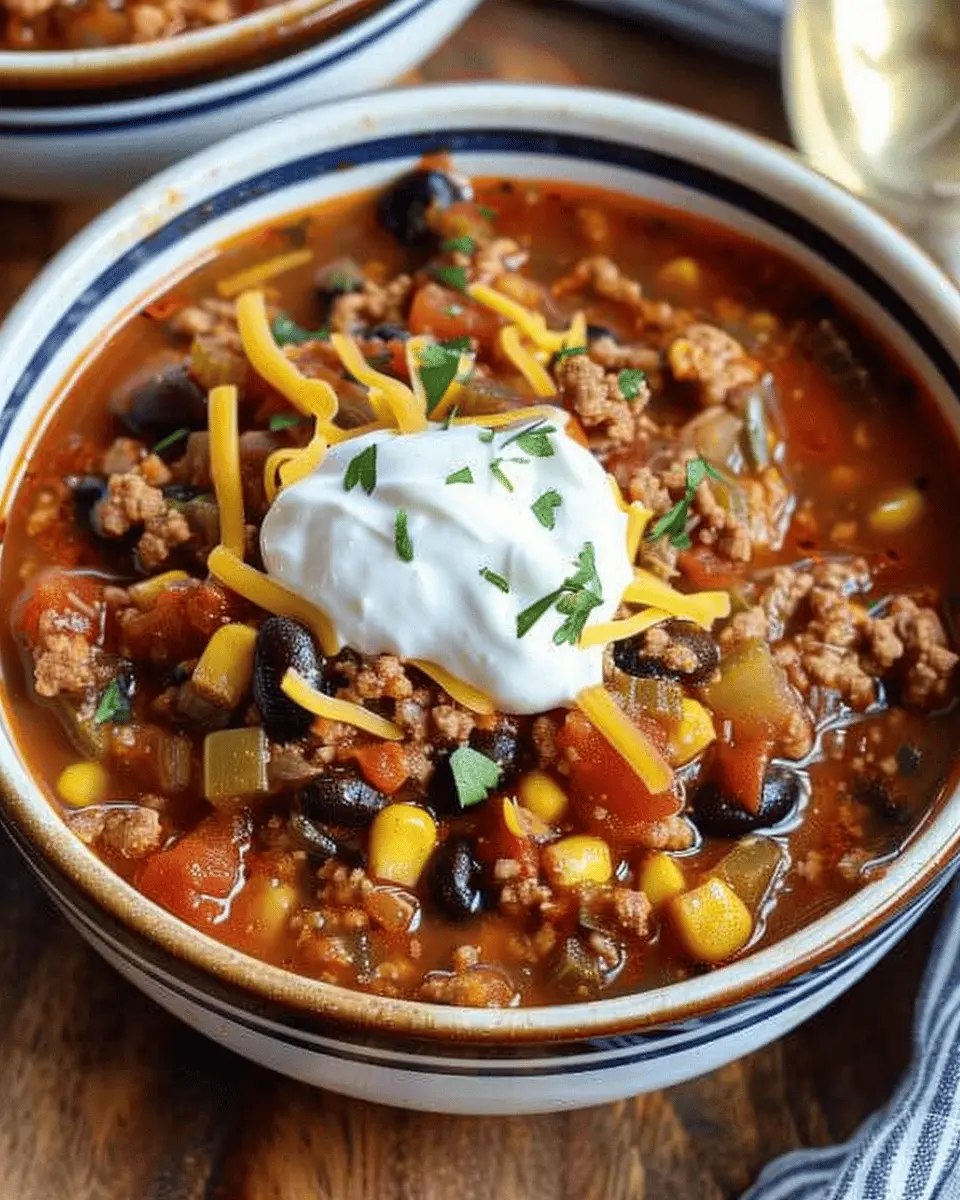 PrintSlow Cooker Taco Soup: Easy, Indulgent Comfort in Every Bowl