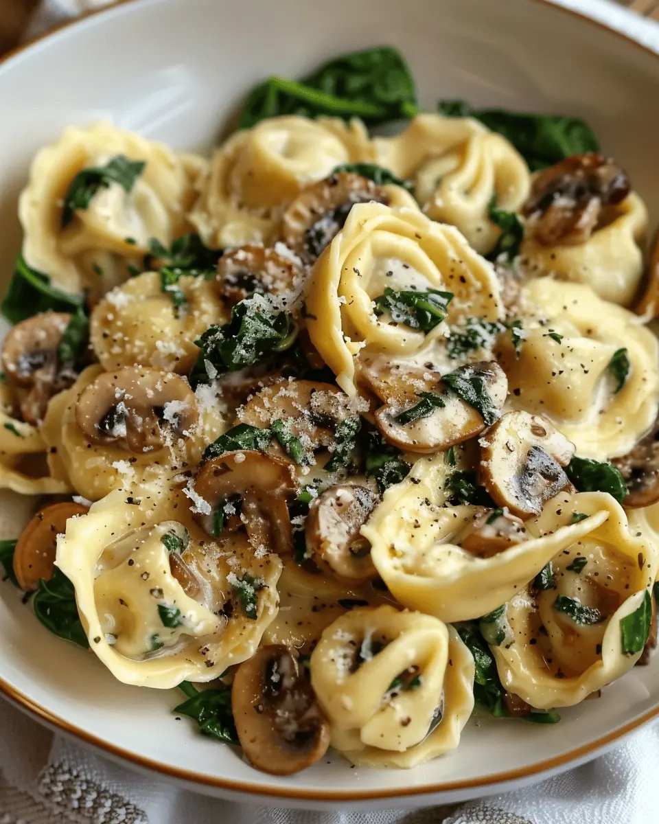 - Enjoy: Dig into your heavenly dish of spinach and mushroom tortellini.