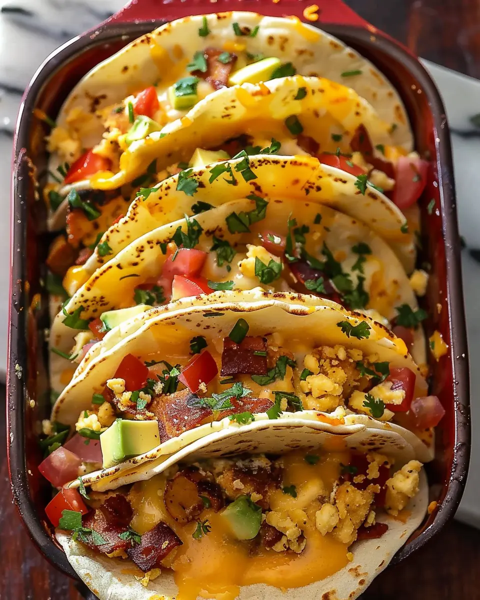 Absolutely! One of the best things about tasty baked breakfast tacos is their versatility for meal prep. You can assemble the tacos in advance, cover them, and store them in the refrigerator for up to 24 hours. When you’re ready to enjoy, just pop them in the oven! This not only saves time in the morning but also gives the flavors a chance to meld together beautifully.