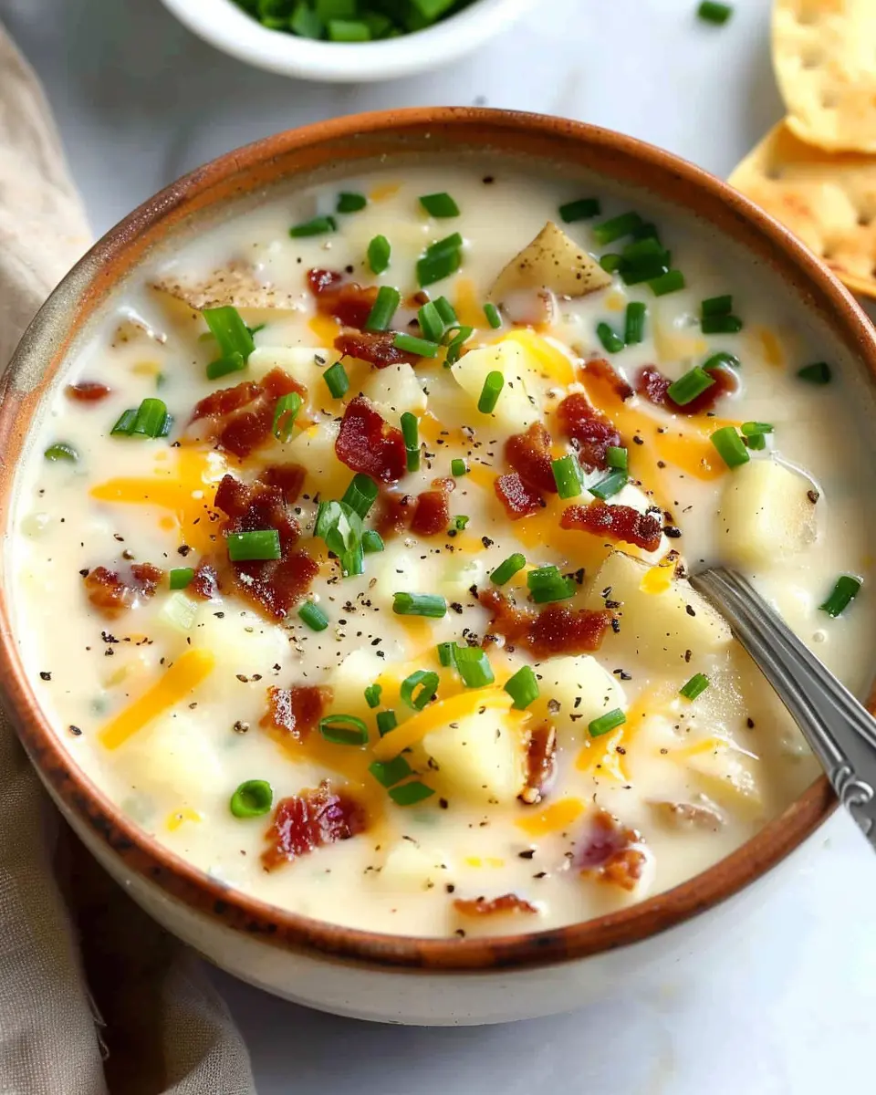 PrintThe Best Loaded Potato Soup: Indulgent Comfort with Turkey Bacon and Chicken Ham