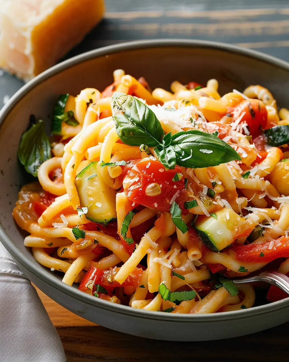 Enjoy a delightful blend of tomatoes and zucchini in this easy pasta dish.